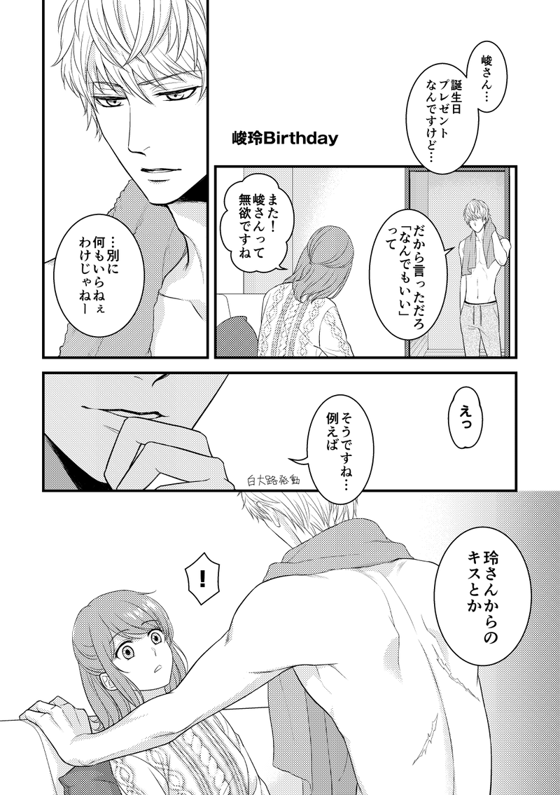生月そら♭☆quiet followPAST23年11月に頒布しました『another 4 seasons』の峻玲パートを掲載いたします。峻さんの傷を表示しないまま印刷してしまったという痛恨のミスがずっと心残りだったので、こちらが正解ということで常時掲載いたします。 show all(+2 images) Tap to full screen (size:1000x1419).Repost is prohibited Let's send reactions! freqpopularsnackothersPayment processing Replies from the creator Follow creator you care about!☆quiet follow 生月そら♭PAST23年11月に頒布しました『another 4 seasons』の峻玲パートを掲載いたします。峻さんの傷を表示しないまま印刷してしまったという痛恨のミスがずっと心残りだったので、こちらが正解ということで常時掲載いたします。 3 生月そら♭PAST槙くんまとめ 3 生月そら♭DONE玲フェスにてペーパーラリーとして描きましたマトリ(樹玲オチ)です。男装の玲ちゃんも良きかな…という発想でしたが、あおぴょんならきっと「男でも泉ならいい…!」と最終的に言ってくれそうだし、そうなるとなるっちが黙ってないだろうな(ニヤニヤ)という気持ちをすべて最後のコマにしたためました(決してペーパーラリーのテーマに合わせるための苦肉の策のオチではないですよw) 4 生月そら♭DONEリラッゴマは抱き心地がいいそう… 生月そら♭DONEこよいち2開催おめでとうございます!前回は1日勘違いして初日参加し損ねるという失態をし、こちらはその時に描いた山神+雪原から加筆したものになります。医者ズが仲良く喧嘩するのが好きです。 生月そら♭DONE荒木田さん誕生日おめでとうございます!ちょっと嫉妬する蒼玲です(注:CP表現はないですが誠さんの名前が出てきます)誕生日と全く関係ないですが少しでもお祝いできればと頑張りました!楽しんでいただければ幸いです♪ 5 recommended works imokooooooooooMENU書き初め描きたい文字多すぎて… 7 yottsunomaruDOODLEDOGS二次🌈です。初夢まんがあけましておめでとう見てくださりありがとうございます!の絵②矢島くんの独占欲も見たい😋🍴110番の日 5 路遥知不知DOODLE补一下三四个月前的档,觉得我写的挺清水的,然后老福特给我屏蔽了(目移) 置き場DONE桃源暗鬼 / 一ノ瀬四季 WDamanaaaDOODLE 3 かんぱりMEMOCoC『AI.Heart』作:あお 様KPC/KP╘ 柳 夏紅夜/かんぱりPC/PL╘ 藤戸 凪咲/ちぇし観戦-Imataki,きゅーす🫖<敬称略>END:A <両生還>『新しくできたカフェ、行こうね』 SHODOODLEラチ kaeruDOODLE先日のスペースのアンケートであった、お酒飲みながらのんびりいちゃつく大人りばち。 Mx_Merfolk_cosDOODLE双子 R15ぐらい