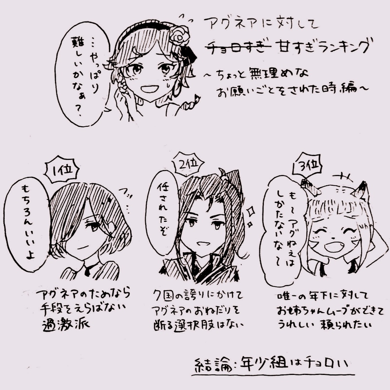 him☆quiet followDOODLEアグネアに対してチョロい年少組 という妄想 #オクトパストラベラー2 octopathTraveler2 Tap to full screen (size:1422x1422).Repost is prohibited Let's send reactions! freqpopularsnackothersPayment processing Replies from the creator Follow creator you care about!☆quiet follow himDONEヒカアグ イベントの無配の表紙がなくて急いで描いた himDONEヒカアグ謎漫画「学者アグネアはミニスカかわいい」9/21のイベントで配ってました。距離が近いのでポイピク行き〜 5 himPROGRESSヒカアグにおけるアグのムッとした顔描くのだーーーいすき😘 himPROGRESS本文塗り、全ページ終わったー!(一晩おいて最終調整する)サントラをシャッフルで流してるのだけど、最後のこのコマ塗ってる時にエンディングテーマ流れてきて感慨深いものがあった。 himPROGRESS himDONEアグネア🌻 2 related works himDOODLEヒカアグ、お互いもたれかかりやすそうな身長差が最高 2 祠崎 蒼DONE浅野チーム年末年始企画2025にお送りしようとして間に合わなくて後から完成させました。送らせていただいた途中のものとだいぶ違う仕上がりになってしまった!あれ!2025年もよろしくお願い致します…!! ca_ma_koDONEテメノスとマティアスさん(なんでも許せる方向け) 2 himDONEヒカアグSS 連作(全2枚)サントラ絵の小話 2 hochotomekawaDOODLEオクヒカ himDOODLE商人アグネア 集金して🧡 hochotomekawaDOODLEハヴェオズ himDOODLEオクトパストラベラーのアート本第二弾っぽい写真(イラスト加筆してるから規約上セーフと言い張る) himDONEクレストランド地方 recommended works MomentumPAST #オクトパストラベラー #octopathtraveler poppogamelovePAST動画に使った「何かをぶち破るクリス」なんだかんだで気に入っているのでここにあげてみる TierraPAST poppogameloveDONE「それ以上口を開かないで、坊や」人様に影響されて描いたやつ… poppogameloveINFO12/8 にじフェス10 in 函館でサークル参加いたしますサークル名は「こくうにつづりて」頒布する同人誌はオクトパストラベラーで「8×8=∞(はちかけはち は むげんだい!)」ネタバレ無しオールキャラギャグ4コマ本です函館の地にオクトパストラベラーを布教しに行きます…! 5 ナナミノキDONEリュカ(カラー2) たこわさDOODLEクジャ様の髪を描きたくなって たこわさPROGRESSなんかもうこれで満足しかけてる。クリッピングのために塗り分けしてるだけなのに。 kate1st_bareDOODLEデートの日サイハンちゃん。異性とご飯を2人きりで食べているからこれはデート!!
