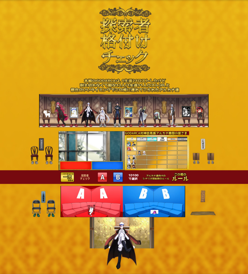 cocシナリオ『探索者格付けチェック~本編のごだるかでは1生還21ロストしたけど耐えきれなくて暇な12人(1生還11ロスト)PLと都合のいいタイミングで連れてこられたアルカナ達~』
