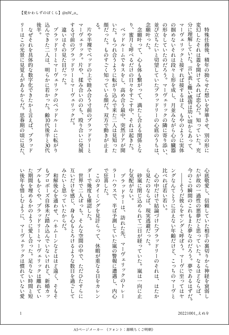 えぬを☆quiet followDONE『愛かわらずのぼくら』pass限定公開18歳以上ですか?yes/no+sで始まる英文字5文字(全部で8文字) #ルスマヴェ rousmavet show hide show all(+9 images) Tap to full screen (size:888x1300).Repost is prohibited Let's send reactions! freqpopularsnackothersPayment processing Replies from the creator Follow creator you care about!☆quiet follow えぬをDONE中の人での三次?創作です。シークレットサービスなtlと大統領なtmの映画があったらいいな〜の妄想。なんでも読みます食べますどんと来いな方向け。pass:英字3字+中の人の誕生月日続けて(合計11字) 5 えぬをDONEブロウジョブ飲むdsさんのjwds小話胸元オープンしすぎ中の人のお写真から、あれdsさんにも着てほしいな、と。 6 えぬをDONEjwds成人向小話正常位でしたいjwと恥ずかしくて死にそうなdsさんとの甘めの話pass18歳以上ですか?(y/n)+年齢差(計5字) 5 えぬをPROGRESS怪物に沼ヒュンしましたjwds馴れ初め小話、鋭意創作中です書き終えたら本にできたらいいな、の、巡る季節を一緒に過ごして色々を育んでいくjwとdsのお話です 33 えぬをDONEjwdsで十二国記パロなんでもOKな方向けです 5 えぬをDONE沼ヒュンした怪物jwds小話。成立前のような、それでいて矢印が双方向に強めなjwds。沼りたての勢いで書きました。 6 related works yokirero_20DOODLE🧜♂️🐺のルスマヴェ※攻めフェですpass:20↑?(y/n)+Mach○○ 計5文字 カリフラワーDONEマ右ワンライ/ルスマヴェ/お題「夢」ルスがいない方が夢、ルスがいる方が現実!👩🏻🏫歯磨く前に飲み物飲めるタイプなので2人にも飲ませた☕️ 3831 Kodama_senDONEあぶ空221210で展示したえっちしてるだけのルマです。声が聞きたいルス君と恥ずかしいマヴ。恥ずかしいと言いつつすでにトぶ寸前😇僕の描くえっちはプロレスになりがち…そしてベロ👅を描きたいんですヘキなんで!!!Pass:18↑?(y/n)+fan○○○○○○○+🐓🐺機体No 3 yokirero_20DOODLE連続絶頂ルマのマ落書きpass:英字3文字 Kodama_senPROGRESSム新刊で唯一のすけべなシーン描いてる🤭自分で言うけど、MagicPoserでポーズつけるのとてもうまい。いやこのアプリすごい僕的には使いやすいんですよ〜PW:18歳以上?(Yes/No)🐔🐺機体番号 2 カリフラワーDONEルスマヴェ/お題「長い夜」離れて暮らす2人。ルスが電話越しにマーヴと夜を過ごそうとする薄い話です🐓📱🐺いつものこととはいえ、回を重ねるごとに薄くなっている気がします…🥲(やはり段落字下げができず読みづらいです、すみません…) 3834 yokirero_20MOURNING #M右ワンドロワンライルスマヴェでお題「バレンタイン」お借りしました🐔🐺pass:英字3文字 3 sak2topPAST🐔🐺過去絵 9 sak2topPAST🐔🐺過去絵 7