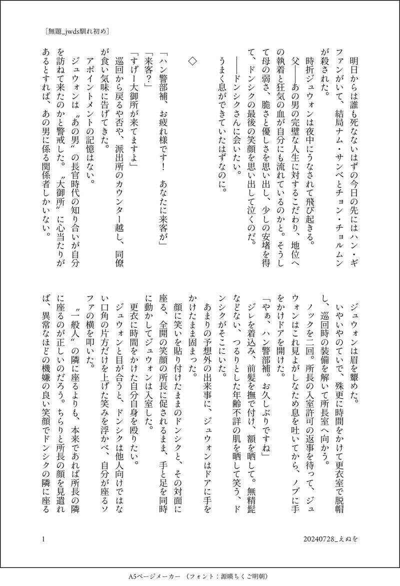 えぬを☆quiet followPROGRESS怪物に沼ヒュンしましたjwds馴れ初め小話、鋭意創作中です書き終えたら本にできたらいいな、の、巡る季節を一緒に過ごして色々を育んでいくjwとdsのお話です show all(+32 images) Tap to full screen (size:888x1300).Repost is prohibited Let's send reactions! freqpopularsnackothersPayment processing Replies from the creator Follow creator you care about!☆quiet follow えぬをDONE中の人での三次?創作です。シークレットサービスなtlと大統領なtmの映画があったらいいな〜の妄想。なんでも読みます食べますどんと来いな方向け。pass:英字3字+中の人の誕生月日続けて(合計11字) 5 えぬをDONEブロウジョブ飲むdsさんのjwds小話胸元オープンしすぎ中の人のお写真から、あれdsさんにも着てほしいな、と。 6 えぬをDONEjwds成人向小話正常位でしたいjwと恥ずかしくて死にそうなdsさんとの甘めの話pass18歳以上ですか?(y/n)+年齢差(計5字) 5 えぬをPROGRESS怪物に沼ヒュンしましたjwds馴れ初め小話、鋭意創作中です書き終えたら本にできたらいいな、の、巡る季節を一緒に過ごして色々を育んでいくjwとdsのお話です 33 えぬをDONEjwdsで十二国記パロなんでもOKな方向けです 5 えぬをDONE沼ヒュンした怪物jwds小話。成立前のような、それでいて矢印が双方向に強めなjwds。沼りたての勢いで書きました。 6 recommended works Suika_KakuriDOODLEルスマヴェ書きかけ。これ[https://privatter.net/p/9025642]の続き、アンサーソング的なの。 3 カリフラワーDONEルスマヴェ。付き合ってます。アイス食べに行くだけのゆるい話です。『アイスクリーム日和』 21 bss0703DONE飼い猫🐔×飼い主🐺のドタバタ何でもありなファンタジーOKな方だけどうぞ、ヤマオチも特に無し。成人済ですか?(y/n) 6015 カリフラワーDONEマーヴに片想いするハンが、ルスマヴェが付き合っていることを知る話です。ハン目線で進みます。ルス×マヴェ←ハンはTGMでかけ算を始めた頃からの性癖なので書けて嬉しい気持ちと、ハピエン大好き人間なのでハンの想いが成就しない解釈違いとで、オタクの思い入れがどんどん強くなりました…🥲その割にいつも通り何も起きません(笑)『長い夢の終わりに』 21 bss0703INFO【修正版】あぶ空で頒布予定ですルースター/マーヴェリック🔞A6文庫本P.238¥1,000Web再録(約53,800文字)+書き下ろし(約32,900文字) 22 蘭彗☆DONESpain trip読む方向:左→右ブラッドリーくん大学でスペイン語学んだらしいから二人でスペイン旅行してほしい(*´ω`*) カリフラワーDONEマ右ワンライ/ルスマヴェ/お題「写真」どこかで読んだような話だったらすみません(たぶんありそう)(それ以前に拙すぎて内容すら理解できないレベルかもしれませんが…)またまた離れて暮らす2人🐓🐺ルスもマーヴに負けじと独り言の音量が大きいといいな。 5173 カリフラワーDONEマ右ワンライ/ルスマヴェ(ルス目線)/お題「満天の星空」天井に星空を映す2人です🌌記憶に残るのは、大好きな人と見上げた作り物の星空…的な…(唐突ですがポイピクの小説投稿機能と文庫メーカーで画像化した投稿、どちらが読みやすいか迷っているのでお手隙の際リプ等でご意見くださると助かります…) 2976 カリフラワーDONEマ右ワンライ/ルスマヴェ/お題「キス」キスの日に乗じる安定のルス🐓ルスマヴェよ、何が起きてもお互いの元へ帰ってくれ、そしてキスを重ねてお互いの存在を実感してくれ… 2838