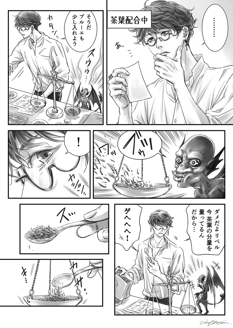 yumenopolis☆quiet followDONE拠点日常漫画(全3ページ)とらくがき。茶葉を配合してオリジナルブレンドの紅茶を淹れるイスマくん。 #ユメノポリス #一次創作 Original Creation #漫画 cartoon show all(+3 images) Tap to full screen (size:1075x1518).Repost is prohibited Let's send reactions! freqpopularsnackothersPayment processing Replies from the creator Follow creator you care about!☆quiet follow yumenopolisDONE一次創作作品『ユメノポリス』の小説第4話です。小話なので短いです。#04旋律『無題』未完成曲 二階からピアノの音が聞こえる。いつの間にか、うとうとしてしまったようだ。 レムは寝転がっていたソファから起き上がると、床に跳び下り大きく伸びをした。一階の広間を出て螺旋階段を上り寝室へと向かう。途中、棚の一つを寝床にしてイビキをかきながら眠っているリベルを横目に、トントンと軽快に駆け上がっていく。二階の廊下に出ると向かって左の扉が少しだけ開いていて中から音が漏れている。 扉の隙間から覗くと、窓際のグランドピアノの椅子に腰掛け、鍵盤に向かう主の姿があった。開け放たれた窓から柔らかな風が吹き込み、カーテンを揺らしながら寝室を通り抜けていく。爽やで優々と鍵盤を弾くその横顔は、とても穏やかでリラックスしているように見える。周辺の空気までも朗らかに感じさせていた。 803 yumenopolisDONE一次創作作品『ユメノポリス』の小説第3話です。#03旋律『トロイメライ』子供の情景 シュラーを潜り抜け、その夢に一歩足を踏み込むと乾いた土の感触がした。 前方は暗く辺りは静まり返っている。目を凝らすと広大な平地が広がっていた。遠くはぼやけて良く見えない。ということは、あの遠方は夢主の意識が及んでいない夢の端、そこは重要ではないということだ。暗いがはっきりと地形が形成されているこの周辺は夢主にとって何か意味のある場所ということになる。しかし、足元は枯れた草木が生えているだけ。良く見ると人の手で慣らした跡が残っている。ここは元々田畑だったのだろうか。 誰の姿もない。夢魔の気配すらこの辺りには感じられなかった。 「…違うな。水晶が見せた場所はここじゃない。もっと──」 ふと、背を押すように背後からふわりと風がひとつ吹き、キラキラと何かが舞って頬を掠めていった。咄嗟に手のひらでその何かを掴み取る。 13141 yumenopolisDONE拠点日常漫画(全3ページ)とらくがき。茶葉を配合してオリジナルブレンドの紅茶を淹れるイスマくん。 4 yumenopolisDONEユメノポリス第一話のラストシーンの挿絵です。 yumenopolisDONE一次創作『ユメノポリス』の小説第2話の挿絵です。今後、挿絵は描け次第追加する予定です🐾 3 yumenopolisDONE一次創作『ユメノポリス』の小説第2話です。挿絵はこの投稿の後に上げておきます。#02旋律 『ノクターン第2番』 イスマの夢 チリリン… 静かな店内に来店を知らせるドアベルの音が響く。客がやって来たようだ。平日の昼間に客が来ることは少ないのだが…。 読みかけの分厚い本から目を外し、カウンター越しに入り口の方を見やる。白いシャツに黒いパンツ姿の長身の男がこちらに向かって歩いてくる。それはよく知った人物だった。 「あぁ、君か。よく来たね。」 「こんにちは、オーナー。ひと月ぶりくらいかな。」 「そうだな、元気そうで良かった。」 「にゃー。」 「やぁ、レム。君も遊びに来たのかい、ゆっくりしていきなさい。」 「んにゃー!」 レムと呼ばれた黒猫は物珍しそうに店内を探索し始めた。 癖毛の黒髪に深紅の瞳、彼はこの店に良く来る常連客だ。常連と言っても、月に一度来るか来ないかだが…。 8780 related works いといとPROGRESSアルマチャンのドヤ顔がめっちゃ際立つ回だと思う4話描くときにほんのりマサルさんのかほり感じながら描くんですよ。パパの血確実に引いてる。#創作 #オリジナル #漫画 #LIFE! grass1jackPAST 水野 ユズDOODLEジャック・オー・ランタンVSライラ戦闘シーン練習がてら…多分続きます ゆきのDOODLEお題 秘密 ゆきのDOODLEお題 海 3 grass1jackPAST モエンジュDONE【ドフロ】2023/1/8に頒布した現パロドフロの同人誌『兄上の恋バナが聞きたいッ!』のペーパーでした🫶この後怒涛のドフ→→→ロ期間が始まります😁 5 nekoana1DONE僕ジャナイヨ-(Φ ω Φ) 2 にじあとPROGRESS進捗進捗ゥ!