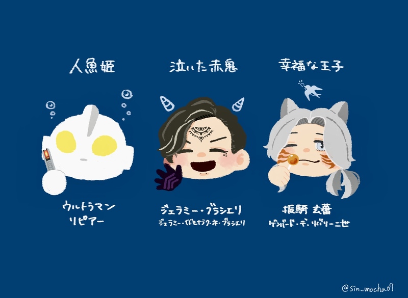 自己犠牲系童話ヒーロー三銃士を連れてきたよ。みたいになった。もっと自分のことを大事にしてほしい3人。