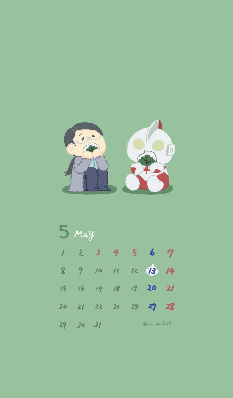 昨年米津さんが配布した10周年記念壁紙が4月で終わりだったので、自分用に5月のシンウル壁紙カレンダーを描きました。