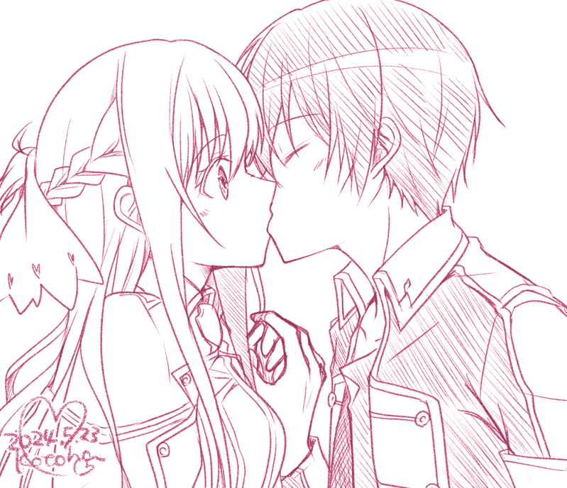 SAO、キリアス好き/好きな構図は何度でも描く/予告なく下げることもあります/いつか色を塗るかもしれません