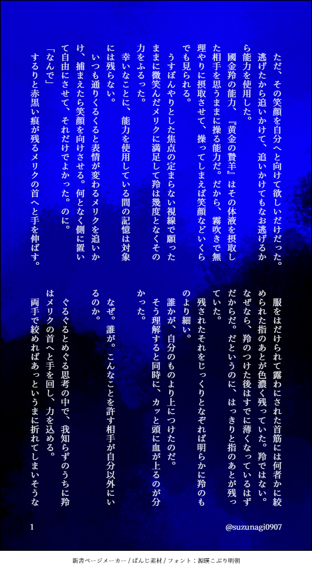 suzunagi0907☆quiet followDONE羚メリ #星廻りのアステリズム asterismsInTheStarCircle show all(+2 images) Tap to full screen (size:618x1132).Repost is prohibited Let's send reactions! freqpopularsnackothersPayment processing Replies from the creator Follow creator you care about!☆quiet follow suzunagi0907DONE四鬼罪 現行未通過× 兄弟たちは〇使うかどうかわからんけども! 4 suzunagi0907TRAINING花ヶ丘 現行未通過× 自陣× R18ぽいぴくみてたら小説とか言う機能があったから試し書き。5000文字は試し書きといえるのか? 5411 suzunagi0907MOURNING花ヶ丘現行未通過✕ただの文字です 8 suzunagi0907PROGRESS本文用紙のせいで厚みが出そうだけど、この用紙、文庫本専用だからそこまで悪いやつじゃないよな……? 3 suzunagi0907MOURNINGこげぬ 現行未通過× 6 suzunagi0907DONE十二因縁 HO:午 3 related works suzunagi0907DONEそれが君の幸せなら 5 suzunagi0907DONE仲良し冬寮 5 suzunagi0907DONE失恋した話。シャロレー先輩と國金さんお借り 7 めりのDONE【ほしあす】未来軸IFマイヤーズ双子 suzunagi0907DONE冬寮が心霊番組みてるだけ 6 suzunagi0907DONE星廻りのアステリズム山羊座と水瓶座の副寮長 6 suzunagi0907DONER18 山羊座二次創作 6 suzunagi0907DONE文化祭フラシャロ二次創作 5 suzunagi0907DONE羚メリ 3 recommended works suzunagi0907DONE星廻りのアステリズム山羊座と水瓶座の副寮長 6 suzunagi0907DONE羚メリ 3 suzunagi0907DONE仲良し冬寮 5 suzunagi0907DONER18 山羊座二次創作 6 suzunagi0907DONE文化祭フラシャロ二次創作 5 suzunagi0907DONE 5 suzunagi0907DONE冬寮が心霊番組みてるだけ 6 suzunagi0907DONE失恋した話。シャロレー先輩と國金さんお借り 7 suzunagi0907DONEそれが君の幸せなら 5
