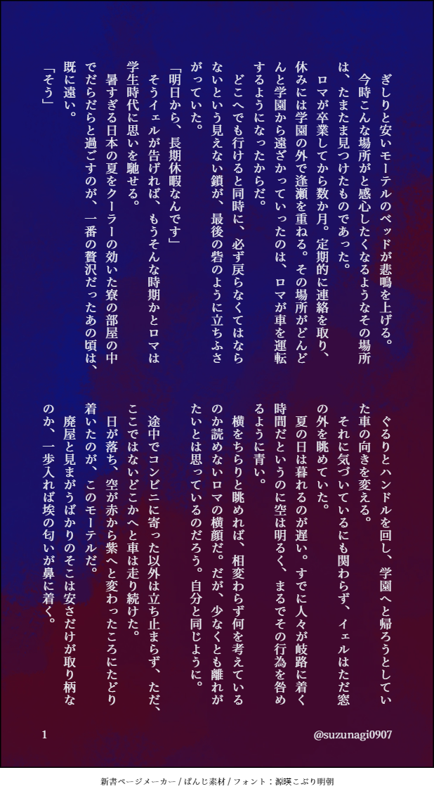 suzunagi0907☆quiet followDONER18 山羊座二次創作 #星廻りのアステリズム asterismsInTheStarCircle show all(+5 images) Tap to full screen (size:618x1132).Repost is prohibited Let's send reactions! freqpopularsnackothersPayment processing Replies from the creator Follow creator you care about!☆quiet follow suzunagi0907DONE四鬼罪 現行未通過× 兄弟たちは〇使うかどうかわからんけども! 4 suzunagi0907TRAINING花ヶ丘 現行未通過× 自陣× R18ぽいぴくみてたら小説とか言う機能があったから試し書き。5000文字は試し書きといえるのか? 5411 suzunagi0907MOURNING花ヶ丘現行未通過✕ただの文字です 8 suzunagi0907PROGRESS本文用紙のせいで厚みが出そうだけど、この用紙、文庫本専用だからそこまで悪いやつじゃないよな……? 3 suzunagi0907MOURNINGこげぬ 現行未通過× 6 suzunagi0907DONE十二因縁 HO:午 3 related works suzunagi0907DONE文化祭フラシャロ二次創作 5 suzunagi0907DONE失恋した話。シャロレー先輩と國金さんお借り 7 suzunagi0907DONE冬寮が心霊番組みてるだけ 6 suzunagi0907DONE仲良し冬寮 5 suzunagi0907DONEそれが君の幸せなら 5 suzunagi0907DONER18 山羊座二次創作 6 めりのDONE【ほしあす】未来軸IFマイヤーズ双子 suzunagi0907DONE星廻りのアステリズム山羊座と水瓶座の副寮長 6 suzunagi0907DONE羚メリ 3 recommended works suzunagi0907DONE星廻りのアステリズム山羊座と水瓶座の副寮長 6 suzunagi0907DONE羚メリ 3 suzunagi0907DONE仲良し冬寮 5 suzunagi0907DONER18 山羊座二次創作 6 suzunagi0907DONE文化祭フラシャロ二次創作 5 suzunagi0907DONE 5 suzunagi0907DONE冬寮が心霊番組みてるだけ 6 suzunagi0907DONE失恋した話。シャロレー先輩と國金さんお借り 7 suzunagi0907DONEそれが君の幸せなら 5