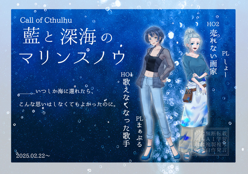 sho_iaia☆quiet followINFOCoC「藍と深海のマリンスノウ」1日目セーブ!HO売れない画家で回ってます!!!まぁさんと2PLのRP楽しー!!!!!!!シナリオの雰囲気もすごく好きなので、明日も楽しみです🥰 Tap to full screen (size:2199x1544).Repost is prohibited Let's send reactions! freqpopularsnackothersPayment processing Replies from the creator Follow creator you care about!☆quiet follow sho_iaiaDONE妹の結婚式で披露宴会場の出口に設置するパネルを依頼されたので描きました!!妹のカラードレスのデザインが歴代最強レベルのフリル地獄だったので大変だったけど、可愛い妹の為だものね😌💕妹自身もわかってない好みの絵柄に、できるだけ近づけるためにラフ案15回くらい書き直した……(その一部も載せとこう)自分の描きやすいタイプの絵ではないので、それも含めて大変だったけど、勉強になった!! 11 sho_iaiaSPOILERCoC「天啓劫火」げんみ❌私も描きたくなったので自探のらくがき……ほんとは描かなきゃいけないものもあるんだけど、1日くらいはね…! sho_iaiaINFOCoC「上手く生きられなくてごめんなさい」KP︰ほっしーPC/PL︰劫燁/しょーEND-1 2 sho_iaiaINFOCoC「天啓劫火」KP:あまなつ。PC / PLHO1 信仰:神代 縁/ほっしーHO2統率:鳳 義成/しょーHO3秩序:宵闇坂 真凪/ながHO4自由:笹川 歩夢/綾瀬END-A 5 sho_iaiaINFOCoC「爛爛」KP︰綾瀬HO1/PL︰Roderich Schwarzschild/しょーHO2/PL︰Leyna/ほっしーエンド︰E 5 sho_iaiaINFO今年上半期に描いた立ち絵を依頼のものも含めて1枚にまとめてみました!去年と比べて沢山描いたな〜🥰 recommended works だけんSPOILER⚠️海も枯れるまで 現行/未通過❌ネタバレ表情差分 3 pplepine_trpgSPOILERソプスク現行未通過❌自陣HO1先生とNPCの登場する漫画です。正史とは関係ないシナリオ後妄想二次創作です。 5 slice1024SPOILERCoC「ソープスクール」ネタバレ感想 終盤前のPL感想げんみ× 3189 @キュマ/小熊奈津DONE【ようこそ!迷冥市役所都市伝説課へ!】探索者の竜胆(リンドウ)ちょっと追加絵、よく目を丸くる竜胆さん 2 せとCoCSPOILERプルガトリウムの夜げんみ❌これちょうど良くてビックリしたえ?????????まさかこうなるとは思ってなくて東京喰種か????になったHO1酒葉さんがマルボロ吸うシーンスッキ!! 2 Snay_P_44DOODLE同居人自陣一周年。3枚目から自陣ラストのネタバレ。 3 tsukikoDONE『輾転と町は』他[霞里 惑(かすみさと まどい)]コミュ弱風景画家。独特の作風で一定のファンがいる。半身に過去の事故由来の傷痕がある。 2 ゆたorzSPOILERクトゥルフ神話TRPG 鰯と柊の重大なネタバレがあります!pass▶︎yes私が初めて回した卓の最後のRP少し遅めの衝動描き線が雑すぎて見れたものでは無いが… 6 メド。DONEメイド服ぅららちゃん