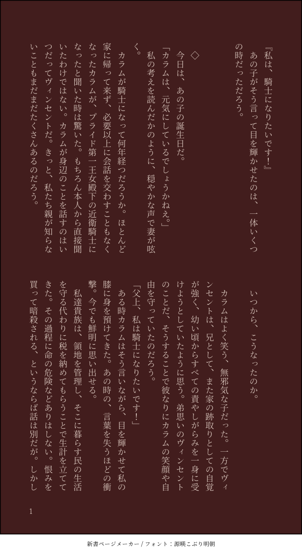 いとこ☆quiet followDONEカラム隊長誕生日おめでとう!!すえっこまつり 2023.1.10 show all(+5 images) Tap to full screen (size:618x1132).Repost is prohibited Let's send reactions! freqpopularsnackothersPayment processing Replies from the creator Follow creator you care about!☆quiet follow いとこDONEkmhkステ+アサ。記憶を無くした殿下と団長。 謎の交流を深めていけばいい。 4 いとこDONEkmhkステイルとアーサーの話。記憶を無くした殿下と団長のほのぼの交流があったら私が嬉しい。 4 いとこTRAININGカラプラ。がまんのげんかいぼるどー いとこDONEハリソンさんのサラ艶ヘアの秘密を探るべく、フリージア王国第一王子が特殊能力を無駄遣いしてくれる話。 6 いとこDONEカラム隊長誕生日おめでとう!!すえっこまつり 2023.1.10 6 いとこMAIKINGキミヒカ軸。カラ死匂わせ。いつか書き上げたいやつ! 3 recommended works yueDONEカラぷでキスの日まだプラ様が隊長呼び抜けてなくて、カラも手を繋ぐのにさえもだもだしてるような婚約者なりたて。なかなか行動に移せない... 7 すったまごDOODLEカラっプラさんでガータートス(サムシングブルー)騎士団での結婚お披露目パーティ(二次会みたいなもの)ならやってくれそうだなと。 すったまごDOODLE【某フォロ様の呟きから爆誕した、ヘタレがすぎるカラさんと純情プラ様】※現パロです。※以下、某様の呟きの概要(掲載許諾済)ある日突然、プラ様から「恋人が出来たので紹介したい」と言われ保護者ーズ(どこの馬の骨がうちの子/お姉様/プラを誑かしたんじゃ!?)とガタガタして、現れたのがこれまた「お前絶対モテるだろ!!?」なカラさんだから黒い覇気が室内に充満する二人はどこまで進んだのか訊いてみたら… 2 いとこMOURNINGからぷ押し倒したいちょ。指でがんばった◎ 2 まほろDONE9月6日「黒の日」、婚姻後のカラ×プラ。 2 いとこDOODLEカラプラで『おそろい』 2 まほろDONEカラプラ婚約済み。紅葉シーズンに思いついた話だったのに、文字化ができずに今ごろの完成。季節感は問わないでください。三部作になる予定のひとつ目の話。(もしかしたら五部作かも) 4 まほろDONEカラプラ婚姻済み。いろいろ妄想と捏造してます(第一子・前世の母)。前世を思い出して第一子(女の子)の初節句を祝うプラ様のお話。カラムとレオンが仲良くなってればいいな、婚姻後も、公式の場以外はアランには「カラム」呼びしててほしいな、いろいろ希望を込めて。 10 まほろDONEカラプラ婚姻済み。甘いです(多分)。バックハグって浪漫だと思うの(個人の嗜好) 4