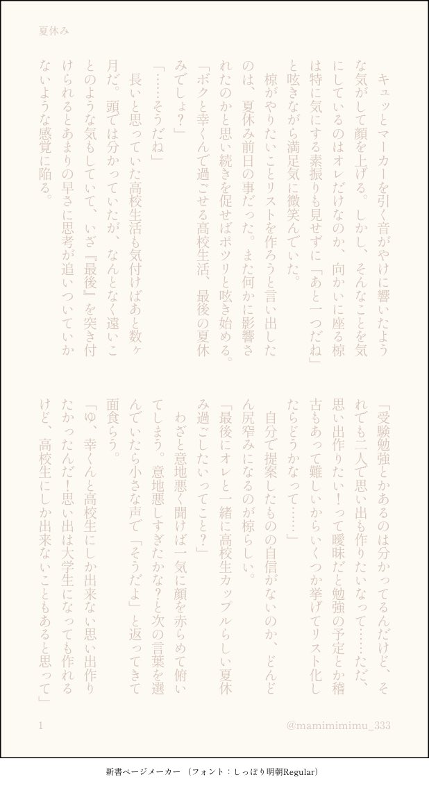mimi☆quiet followDONE椋幸ワンドロライ「夏休み」 #椋幸 show all(+2 images) Tap to full screen (size:618x1132).Repost is prohibited Let's send reactions! freqpopularsnackothersPayment processing Replies from the creator Follow creator you care about!☆quiet follow mimiDONE付き合ってる椋幸 パピコ食べたくて書きました 3 mimiDONE付き合ってない椋幸。椋→幸の片思いイメージ。去年のストーリー回答ネタです 2 mimiDONE椋幸ワンドロライ「夏休み」 3 mimiDONE椋幸ワンドロライ「撮影」 4 mimiDONE椋幸ワンドロライ「初詣」 3 mimiDONE椋幸ワンドロライ「映画」 5 related works mimiDONE椋幸ワンドロライ「チョコレート」 3 🍤🍤🍤DOODLE ##腐 4 mimiDONE椋幸ワンドロライ「誕生日」 3 mimiDONE椋幸ワンドロライ「初詣」 3 🍤🍤🍤DOODLE ##腐 #椋幸 2 mimiDONE椋幸ワンドロライ「撮影」 4 mimiDONEキスしたいけど幸くんを大切にしすぎるあまりなにも出来ない椋くんと、そんな椋くんを察して(?)自分から動く幸くんはあると思って書いた椋幸です。 3 mimiDONE椋幸ワンドロライ「映画」 5 mimiDONE椋幸ワンドロライ「夏休み」 3 recommended works りりいちDOODLE本誌312夜 性転換予想ネタ 2 DONDONDONKIDOODLEぎあちょ夢一度ラフ描いて没にしたけど描いたので載せる。解釈違い死んでるので我慢できなかったら消す。ボツ理由とかも一緒に載せました🤨よくよく見たら腕おかしいけどゆるして‥パス 成人か yes or no scabbardMEMO火烧村塾时年龄段的银与没怎么变过的松虚,有(没什么用的)重生,有产乳,略有修改 3075 tumariMarineDONEメリークリスマス!ということでイザシズの軽めのエロです。シズに自分の腹擦りながらここまで欲しい(意訳)をしてほしかっただけの産物。やまなしおちなし。エロはぬるい。常温の生クリームくらいぬるい。濁点喘ぎ。腹擦ってここまでって言うシチュっていいよね私は好きです。誰か描いてください。 4 茶言葉_qilimoanDOODLE基于圣诞ego衍生的触手×以实玛利key:yes 6 出口あさながDONECoC 禍福街 - 13番通りの厄祓い屋HO2用心棒 カダ 年中海開きMEMOメリクリ〜〜〜! IareiareMloDOODLEエロ絵を練習したい 2 阳雪白春DOODLE 2