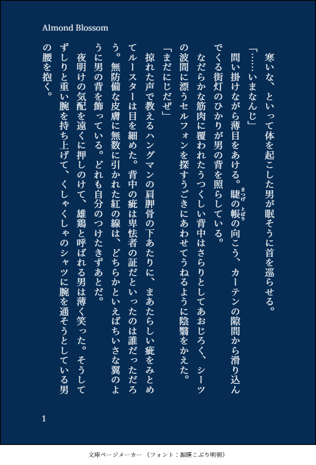 BBD_6P☆quiet followDOODLEハンルス。深夜のはなし。何のエロいこともないですが全編半裸です。Almond Blossom (en) アーモンドの花ことばは真実の愛。にじどころかよじだった。そろそろ寝る。 #ハンルス heartbeat show all(+1 images) Tap to full screen (size:630x928).Repost is prohibited Let's send reactions! freqpopularsnackothersPayment processing Replies from the creator Follow creator you care about!☆quiet follow BBD_6PDOODLE○×ゲームのはなしハンルスオンリーおめでとうございます!!!昼休みの32分で急いで書きました。お許しあれ!! 3 BBD_6PREHABILIハンルス。呼称と初回におわせ?吹き飛ぶように軽い。めちゃくちゃ久しぶりに書きました。やっぱりハンルスはたのしいです。You Owe Me. (en) 貸しがある 10 BBD_6PDOODLEルス誕!!リアルタイムがやってみたくて、きょうの12時10分(JST)から書き始めました。間に合ってはいませんが、お祝いのきもちはいっぱいです。お誕生日おめでとうございます🥳💕Do Make a Wish(en) 願い事をして!2023/06/28 12:57(JST)—2023/06/27 23:57(EDT)書き下ろしなのでいつも以上に粗いですが広い心でご覧ください! 3 BBD_6PDOODLE【ハン許】ハンルスと花粉症ルスが花粉ダメだったらかわいいなと思ったけれども、ハンが怖い感じの話になってしまいました。Pollen Fever(en)花粉症2023/06/25 04:27 3 BBD_6PDOODLE【ハン許】リハビリで書いたおはなしの再掲。ルスの実家の庭で過ごすふたり。ハンルスとキャロという構図を2本も書いてしまった。他人のために銀食器を磨く話も書きたい。2023/06/21 19:22 6 BBD_6PDOODLE【ハン許】過去にキャロがハンに会っていたらどうかな、というくらいの気持ちで書きました。捏造具合がひどいので、苦手なかたはお気をつけください。最近ずっとBeatlesで書いている気がします。2023/06/25 01:34 7 related works BBD_6PREHABILIハンルス。呼称と初回におわせ?吹き飛ぶように軽い。めちゃくちゃ久しぶりに書きました。やっぱりハンルスはたのしいです。You Owe Me. (en) 貸しがある 10 X_kiriyaMENUSPARK18で鮫さんと出す合同誌『すりーさむのほん。』の、漫画パートのサンプルです。R18/A5/40頁/700円バカンスの始まりと終わりがテーマで、最後にとっておきのお楽しみが…。そんな右ルスのスリーサム本。最初から最後まで愛されてます。pass→SPARK開催日(4文字)+18歳以上?(yes? no?) 10 greenteaMEMOふと思いついたマヴェルスにならなかったハンルスを忘れないうちに 354 greenteaMENU4月9日のオフイベにて頒布予定のハンルス本のサンプルです。価格1,000円、文庫、本文116P、再録込みとなります。よろしくお願いします。 3306 greenteaDOODLEむしゃくしゃ、落ち込んてるルースターとよしよししてあげるハングのハンルス 792 X_kiriyaMENUSPARKに発行する、『ミッチェルさん家の人妻2』のサンプルです。R18/A5/12頁/300円人妻AVが好きなハンがマヴと結構して人妻になったルスに興奮してしまう。そんな人妻ギャグ本の第2弾。設定や時間軸は前作の続きで、今回もNTRはありません。pass→SPARK開催日(4文字)+18歳以上(yes? no?) 3 X_kiriyaMENU【既刊】あぶ空での配布物マヴェルス/ハンルス/R18/本編40頁右ルス3P漫画。とにかく幸せでえっちな3Pを目指しました。本編には以下の成分が含まれます。(ハメ撮り・体毛・♡喘ぎ・中イキ)【Pass】例の英字3桁+18歳以上?(yes?no?) 31 greenteaDOODLEわんちゃんになったハングマンのハンルス小話 1417 BBD_6PMOURNINGハンルス。ずっと一緒にいたいハンと、そうはならないと思っているルス。まったく色っぽくないけど全編裸です……そんなんしかかいてないな私。♪Magic Waltz (1998) 5