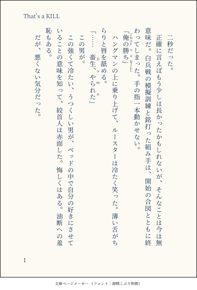 BBD_6P☆quiet followMOURNINGハンルス。オフ会に浮かれて書きました。強い右が好き。ほんとうに好き。7:35 PM · Mar 28, 2023 #ハンルス heartbeat Tap to full screen (size:630x928).Repost is prohibited Let's send reactions! freqpopularsnackothersPayment processing Replies from the creator Follow creator you care about!☆quiet follow BBD_6PDOODLE○×ゲームのはなしハンルスオンリーおめでとうございます!!!昼休みの32分で急いで書きました。お許しあれ!! 3 BBD_6PREHABILIハンルス。呼称と初回におわせ?吹き飛ぶように軽い。めちゃくちゃ久しぶりに書きました。やっぱりハンルスはたのしいです。You Owe Me. (en) 貸しがある 10 BBD_6PDOODLEルス誕!!リアルタイムがやってみたくて、きょうの12時10分(JST)から書き始めました。間に合ってはいませんが、お祝いのきもちはいっぱいです。お誕生日おめでとうございます🥳💕Do Make a Wish(en) 願い事をして!2023/06/28 12:57(JST)—2023/06/27 23:57(EDT)書き下ろしなのでいつも以上に粗いですが広い心でご覧ください! 3 BBD_6PDOODLE【ハン許】ハンルスと花粉症ルスが花粉ダメだったらかわいいなと思ったけれども、ハンが怖い感じの話になってしまいました。Pollen Fever(en)花粉症2023/06/25 04:27 3 BBD_6PDOODLE【ハン許】リハビリで書いたおはなしの再掲。ルスの実家の庭で過ごすふたり。ハンルスとキャロという構図を2本も書いてしまった。他人のために銀食器を磨く話も書きたい。2023/06/21 19:22 6 BBD_6PDOODLE【ハン許】過去にキャロがハンに会っていたらどうかな、というくらいの気持ちで書きました。捏造具合がひどいので、苦手なかたはお気をつけください。最近ずっとBeatlesで書いている気がします。2023/06/25 01:34 7 related works X_kiriyaMENU【既刊】あぶ空での配布物マヴェルス/ハンルス/R18/本編40頁右ルス3P漫画。とにかく幸せでえっちな3Pを目指しました。本編には以下の成分が含まれます。(ハメ撮り・体毛・♡喘ぎ・中イキ)【Pass】例の英字3桁+18歳以上?(yes?no?) 31 X_kiriyaMENUSPARK18で鮫さんと出す合同誌『すりーさむのほん。』の、漫画パートのサンプルです。R18/A5/40頁/700円バカンスの始まりと終わりがテーマで、最後にとっておきのお楽しみが…。そんな右ルスのスリーサム本。最初から最後まで愛されてます。pass→SPARK開催日(4文字)+18歳以上?(yes? no?) 10 greenteaMEMOふと思いついたマヴェルスにならなかったハンルスを忘れないうちに 354 BBD_6PREHABILIハンルス。呼称と初回におわせ?吹き飛ぶように軽い。めちゃくちゃ久しぶりに書きました。やっぱりハンルスはたのしいです。You Owe Me. (en) 貸しがある 10 greenteaDOODLEわんちゃんになったハングマンのハンルス小話 1417 greenteaMENU4月9日のオフイベにて頒布予定のハンルス本のサンプルです。価格1,000円、文庫、本文116P、再録込みとなります。よろしくお願いします。 3306 X_kiriyaMENUSPARKに発行する、『ミッチェルさん家の人妻2』のサンプルです。R18/A5/12頁/300円人妻AVが好きなハンがマヴと結構して人妻になったルスに興奮してしまう。そんな人妻ギャグ本の第2弾。設定や時間軸は前作の続きで、今回もNTRはありません。pass→SPARK開催日(4文字)+18歳以上(yes? no?) 3 BBD_6PMOURNINGハンルス。ずっと一緒にいたいハンと、そうはならないと思っているルス。まったく色っぽくないけど全編裸です……そんなんしかかいてないな私。♪Magic Waltz (1998) 5 greenteaDOODLEむしゃくしゃ、落ち込んてるルースターとよしよししてあげるハングのハンルス 792