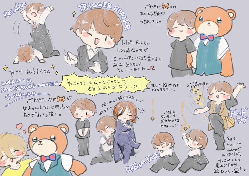 zeitaku_ren☆quiet followSPOILER2024.8.24~25うたの☆プリンスさまっ♪ ST☆RISH LIVE STAR TREASURE -MOONSHINE- #レポ report Tap to full screen (size:1754x1240).Repost is prohibited Let's send reactions! freqpopularsnackothersPayment processing Replies from the creator Follow creator you care about!☆quiet follow zeitaku_renSPOILER2025-4-11~27ドリームハイ zeitaku_renDOODLE2025-2-23るいいべVol.9 zeitaku_renSPOILER2024-9-22そりバ-2024-2024-10-12.13わんダフルハロウィン zeitaku_renSPOILER2024.8.24~25うたの☆プリンスさまっ♪ ST☆RISH LIVE STAR TREASURE -MOONSHINE- zeitaku_renSPOILER2024.8.4るいと秘密の時間VOL.1 zeitaku_renSPOILER2024.1.27るいいべVol.8 related works oskn_jsBLANKマモルンジャー 3 koi_mayugeeSPOILER忍ミュ 11弾 10/17 夜公演 見てきたので感想を殴り書き。がっつりネタバレなので(しかも断片的な…)、観劇した方、若しくはネタバレを見に来た方のみご覧下さい。【追記】守一郎!!復帰おめでとうございます(;_;)千秋楽の映像で見れるのを楽しみにしています。 5 つばきさんCAN’T MAKEとりあえず1部のみネタバレはないと思うけど一応ワンクッション oskn_jsDONEラジスマ公録1部に参加してきましたメモ。 2tsukushinbo6SPOILER新テニミュ東京凱旋、2/10ソワレ。赤也定点 wawawaTIRED慈伝の好きな部分です。 つばきさんDOODLEえーすてレポ。ネタバレ注意。とりあえず春組以外から。春組は後であげます。 oskn_jsDONEMAMORU MIYANO LIVE TOUR 2017 LOVING!衣装とセトリのメモ。 4 fransowaPASTAGFK2018寺島惇太さんキンプリステージレポ 4 recommended works oskn_jsDONEミュージカル王家の紋章。前から3列目でマモミル様のお顔や表情、視線の演技を事細かに見ることができた。 oskn_jsDONE2017.6.3 ラフピファンミvol5 2 oskn_jsDONEラジスマ公録1部。三途の川コーナーが始まる前に、ちゃんと山田がミニ番傘を持ってきてくれていた。使われなかったけれど。 oskn_jsDONE髑髏城の七人 Season月 下弦だいすき。 6 oskn_jsDONE2018.5.5(1日目)ST☆RISHファンミーティング oskn_jsDONE2018.5.19 GODZILLA 決戦機動増殖都市の舞台挨拶。ハルオとユウコの予告シーンでみんなから「キスしてる〜!」って冷やかされて照れてる時の宮野さんかわいかった。 oskn_jsDONE2019.3.7 めざましライブ 日本お元気キャラバン in国技館衣装とセトリのメモ。席が悪すぎて何も見えなかったけど、セトリが超濃縮還元したミニマモライで神がかってた。大満足のライブ。 oskn_jsBLANKマモルンジャー 3 oskn_jsDOODLE2019.12.10 WSS Season1アフタートークショー”TOBIの部屋”のメモ。司会のTOBIさんと、宮野さん、笹本さん、樋口さん。15分ほどのトークだったけれど、色んなお話が聞けて楽しかった〜! 4
