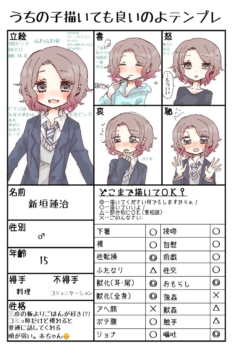飴宮🍬☆quiet followPAST最近描いたれんじ #れんじ latticework #恋々気温。 #れんきお streakedHair ##創作 show all(+5 images) Tap to full screen (size:810x1200).Repost is prohibited Let's send reactions! freqpopularsnackothersPayment processing Replies from the creator Follow creator you care about!☆quiet follow 飴宮🍬DONEあけおめ 飴宮🍬DONEジフアニメ投稿いける?自創作でテレキャ/スター/ビーボーイのトレスしました 飴宮🍬MEMOニート 5 飴宮🍬MEMOれんじ似たようなやつばっか 5 飴宮🍬MEMO創作BL アンユージュアルのぼんやりとした設定と描きたいネタ 12 飴宮🍬PAST水彩 4 related works 飴宮🍬PAST最近描いたれんじ 6 recommended works harumachi_eriTRAININGキャラ習作#創作 ラッキーDONEいい夫婦(+息子)の日 いといとPROGRESSらいふ7話進捗!9p目~!そろそろ折り返しだ~!画像ちょっとさっきの投稿の絵もだぶってますけど!アイリス嬢の幸せなドヤ顔がものっそいです。ものっそい。大体残り6pくらいになるとヒートアップするのであと6pくらい描いたらすさまじいスピードであげれるはずってことは5日後くらいに完成してない……???そんなことはない……???いえす、とりあえずがんばります しらすDOODLEあの例のスロットメーカーの診断結果をもとに!「隠居した魔王と誰からも疎まれた聖女で誰も得しない復讐劇」隠居魔王→スーツの紳士。隠居じゃなくて息子に立場奪われた。疎まれ聖女→顔に傷のある聖女様。とある村で迫害を受けていた少女(それを村人は「お前は聖女だから」という理由で正当化してた的な)。こんな感じでふくしゅうする話なんじゃないかなぁ…(*'ω'*) neikikiDOODLE昔作った、イタズラ好きな子。慰めるのも好き。 kyoDOODLE神とか悪魔の類いでもいいけど、SCP的な存在かも。 tekitounaDONEコミティア129おしながき24ページ300円。 2 しずるTRAINING横顔 2 飽き性/せこDOODLE 6