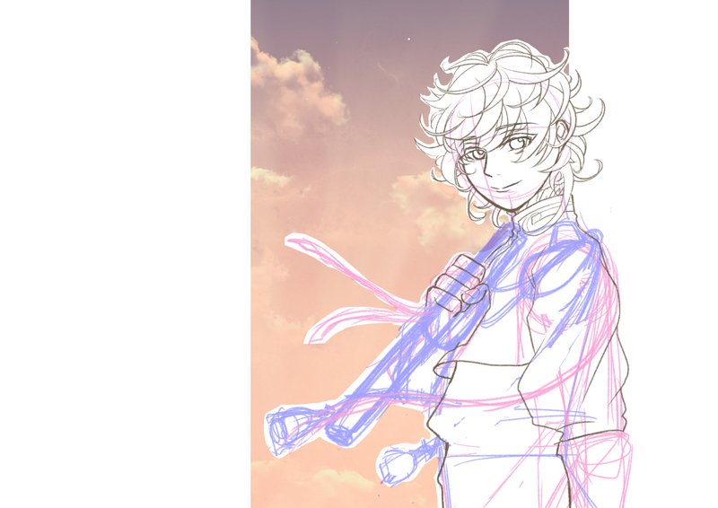 ものよぴ君の重要文化財記念日イラストのかきかけ。