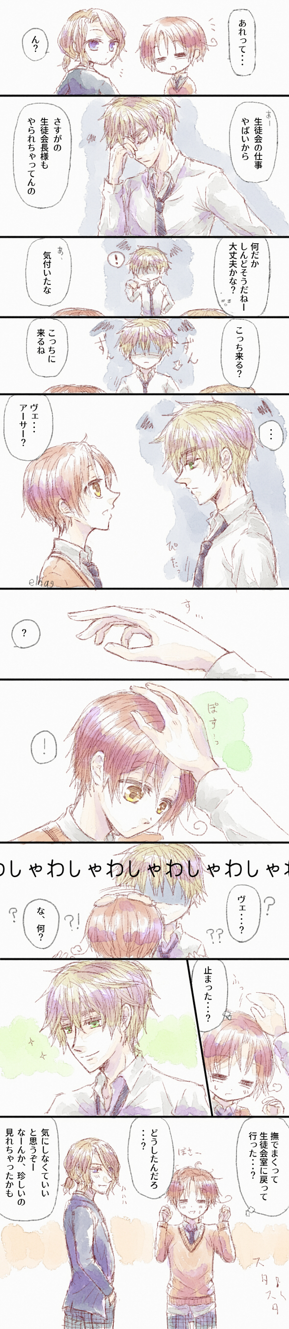 _eina_☆quiet followDONEフェリちゃんとフランシス兄ちゃんとアーサーちょっと癒されたようです。フェリちゃんセラピー? Tap to full screen (size:589x2700).Repost is prohibited Let's send reactions! freqpopularsnackothersPayment processing Replies from the creator Follow creator you care about!☆quiet follow _eina_DOODLEぷらいべったーにも置いたお絵かき。格納場所に悩み中。多分、ヘタはここメイン _eina_DOODLE10/4からの週末のお絵かき。1枚目以外はなんとなく設定気に入った菊フェリっぽいもの 4 _eina_DOODLE「不貞腐れてる理由は分かったが、…お前、仕事しにここ来たんじゃないのか?」「何言ってるんだい?俺はこのソファで寛ぎに来たのさ。それに残念だけど、さっきのことでイライラしてるからやる気が起きないしね」「・・・」この後、フラン兄ちゃんも来て、不機嫌なことの顛末を聞いて(実はさっき、花壇の前でほのぼのしてるの見たんだよねー…ま、言わなくてもいいか)と思ったり _eina_DOODLEイヴァフェリっぽいお絵かき。この笑顔は多分アルとかに向けてこの後、ただ花壇の様子見に行くとかそういうほのぼの展開 _eina_DOODLE気分変えて久しぶりに絵チャで描いてみる。ちまちま絵チャで描いたのここにまとめ 5 _eina_DOODLE学パロフェリちゃんは美術部入っててほしい。 recommended works mo_masimasiDOODLEツイステ絵チャで描いたやつ(2枚)くつろぎと新春のPU楽しみだねセベク😊 2 沙弥(さや)DONE🐙🌟二次の描き納めかもしれん 2 鬼忍者可愛いDOODLEショタクレナイ君落書きと大人クレナイ君落書き。間のクレナイ君が一番クレナイ君らしい年齢だと思うのだが描けない!! 2 hour_selfMOURNINGロミシンCメロパロ 2 saaaaaayn_dayoDOODLEジジと邪視と猫のつづきhttps://x.com/saaaaaayn_dayo/status/1873957953449189388 2 一绪桑DOODLE钟空养父子abo 12586 i2a0_88DOODLEFF5はファリス推しです。プレステからはFF離れしてましたが黒魔導士のサリサたんに会うため、FF9をプレイした程に。 2V28iGaDr7uaplgMEMOエモクロア「キブンゼ」GM:おと さんPL:花宮 恋歌/白米軍艦エモクロア2回目でまだ勝手が分からず介護になってました💦地雷系恋歌ちゃん楽しかったです!来年はエモクロアどんどん回っていきたいです! pnyo_emcDOODLEいつか清書したかったり、落書きで終わらせたいものだったり 15