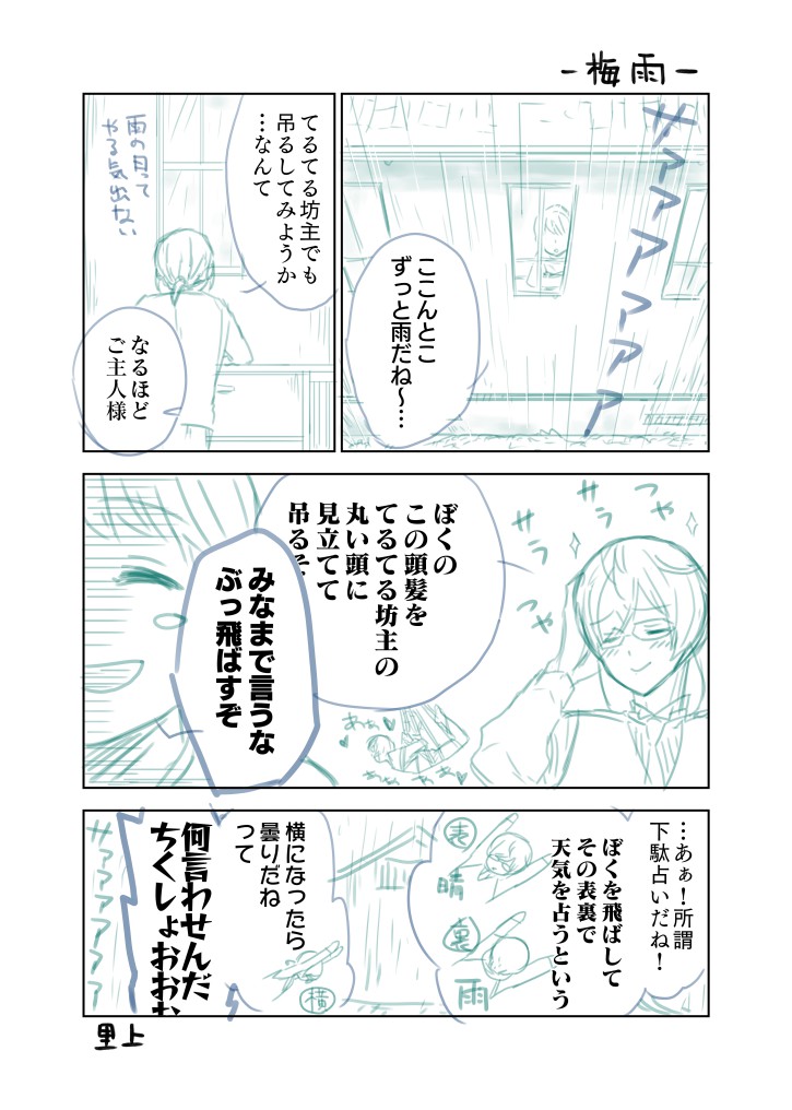 里上久路☆quiet followMAIKINGあんスタやら聖剣3やら遊んでばかりいたら漫画描けなくなってたんですけど久しぶりに描くことが出来ました。6月にぴったりのネタ! #亀甲貞宗 #刀剣乱舞 #二次創作 ##・・れたい亀甲さんと・・たくない審神者 ##ラフ原稿 Tap to full screen (size:725x1016).Repost is prohibited Let's send reactions! freqpopularsnackothersPayment processing Replies from the creator Follow creator you care about!☆quiet follow 里上久路PROGRESS小さい亀甲さんを描いてる 里上久路PROGRESSまとめ本の空きページを描いてる 里上久路DONEできました、夜のお誘い。ですが安心してください、何にもしてませんよ。 7 里上久路PROGRESS描いてますん 里上久路MAIKING就任九周年でした!おめざっス!(おめでとう+ありがとうございます)亀甲さんの言うご奉仕とは!?怖いです!! 3 里上久路DONEできました、花火と秘密。もうひとつの台詞もいつかどこかで使いたい…それ単品では思いつかない… 2 related works ココノカSPOILER幻覚なので全くネタバレではないけど1072話の発言ネタ わたさくDOODLE ちゃづDONE描いたやつその1※茨あん、ジュンあん 17 きくちゃんDOODLEサタン様犬好きかと思いきやロクサーンみたいなパターンもあるのでやっぱ人外思考なのかな~ ちゃづDONE描いたやつその1※茨あん、ジュンあん 17 きくちゃんDOODLEサタン様犬好きかと思いきやロクサーンみたいなパターンもあるのでやっぱ人外思考なのかな~ 2watoyoDOODLE【朝のボールペン落書き】【日楠♀】【先天性女体化】日高先輩×男装後輩サキュバス家系楠ちゃん。海編。本当に気にしてるのは。 nnnnnnoodderaDONE【腐向け】チャバが酔ってハ崎さんに甘えてる漫画。ハ崎さんがトイレに行くのを我慢していたりする。 4 べこDOODLEピンク色のバレンタインなヨウグズ🍫 recommended works chanmit_038DOODLE #岩融 #刀剣乱舞 ぬまこDOODLE主線なしらくがき#刀剣乱舞 #博多藤四郎 #とうらぶ ioko06PAST マヨコDOODLE横顔美人をひたすら眺めたい あずき@本丸DOODLEもぐもぐぎねくん、はぐはぐ薬研くん *hacchi*MAIKINGアイビスで線画抽出して復活させてる、、 _NyuudouDOODLEやげげのげ jikuyarouDOODLEお風呂と兄弟 マヨコDONE脱……