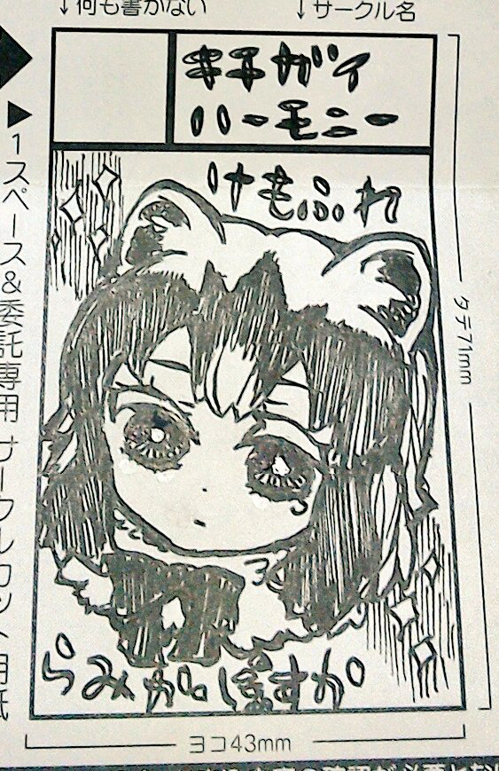 ametuki☆quiet followPAST2017年地元イベに参加した時のサークルカットとペーパー#けものフレンズ#けもフレ ##版権 show all(+3 images) Tap to full screen (size:563x869).Repost is prohibited Let's send reactions! freqpopularsnackothersPayment processing Replies from the creator Follow creator you care about!☆quiet follow ametukiDONE2021.1〜3BOOTHのおまけ絵のまとめ創作とけもフレ両方入ってます 8 ametukiPROGRESS2020.12エアコミケ2に出す予定のらくがき本進捗フリートに垂れ流した画像まとめ#けものフレンズ#けもフレ 18 ametukiBLANKケント紙の下描きから水彩紙に線画を整えて寝かせてる大きい紙なので塗るの緊張する 3 ametukiBLANK溜まるだけ溜まっていく線画ケント紙に下描き→気が変わって水彩紙に印刷→シャーペンで綺麗に線画を整える 2 ametukiTRAINING2020.11久しぶりの水彩紙はコットマン写真撮ってたので塗り工程まとめました 6 ametukiPAST親戚ちゃんリクエストの2020年度の上靴絵1〜5枚目→2020年4月6〜9枚目→2020年10月 9 related works 虚無さんDOODLE20170830 己吟@秋田犬コナツの人PAST過去絵諸々 8 虚無さんDOODLE20190317 n__yuicaDOODLEなんかあったらすぐ泣きそうだなあと思いまして…つい… 糸吉糸PAST例の場所でのアレ 2 虚無さんDOODLE20170831 2 譛帷視繧ィ繧ソ繝シ繝翫ΝCAN’T MAKE切実に塗り方を教えてほしい 3 なち(@nanoally4)DOODLEマーリン/fgo霊衣おめでとう りぃさんDONEエドガーと待ち合わせしたい人生でした。
