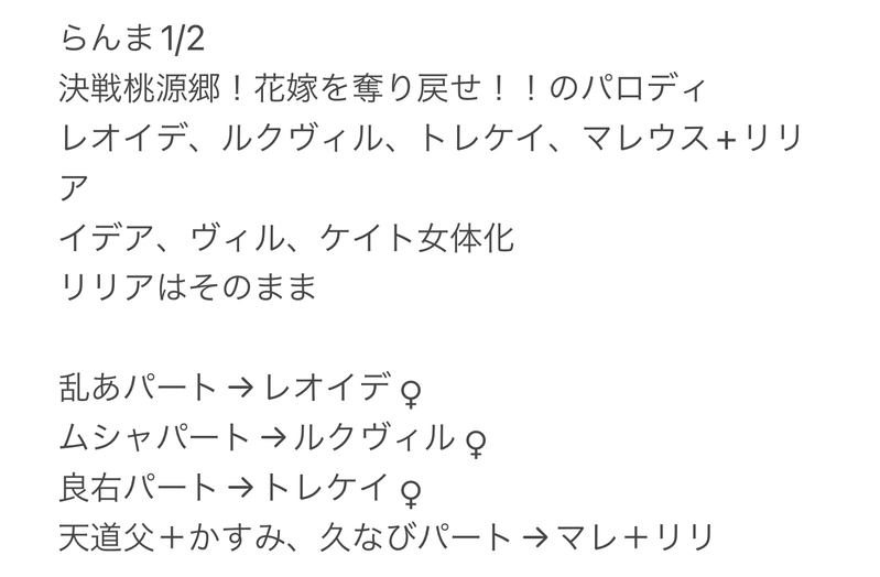 決戦桃○郷!花嫁を○り戻せ!っていう映画の展開をベースに、背景やメインキャラ以外の人物などはちゃんと考えてリスペクト&パロディの範疇に収まるような作品にしていきたいです!
