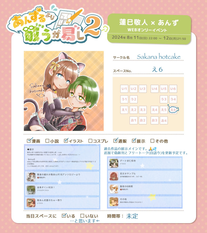 hour(あわ)☆quiet followMENU2024/08/11敬あん:敬あんWebオンリー『あんずるより敬うが易し2』お品書き ##敬あん ##イベント Tap to full screen (size:1200x1350).Repost is prohibited Let's send reactions! freqpopularsnackothersPayment processing Replies from the creator Follow creator you care about!☆quiet follow hour(あわ)DONE2025/10/09ひめあん:🎀シャッフル良〜! hour(あわ)DONE2025/10/07ニキあん:🥂 hour(あわ)DONE2025/09/24りつあん:罪深きめんだこずぴが持ってたのはめんだこぬいです← hour(あわ)DONE2025/09/22りつあん:こっち見てよ hour(あわ)DONE2025/09/21司あん:おもてなしsppいいぞ← hour(あわ)DONE2025/09/21寝言推しと推しが似てることについての証明()です