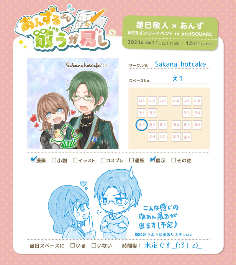 hour(あわ)☆quiet followMENU2023/03/10 敬あん:敬あんWebオンリー『あんずるより敬うが易し』お品書き ##敬あん ##イベント Tap to full screen (size:1200x1350).Repost is prohibited Let's send reactions! freqpopularsnackothersPayment processing Replies from the creator Follow creator you care about!☆quiet follow hour(あわ)DONE2025/10/09ひめあん:🎀シャッフル良〜! hour(あわ)DONE2025/10/07ニキあん:🥂 hour(あわ)DONE2025/09/24りつあん:罪深きめんだこずぴが持ってたのはめんだこぬいです← hour(あわ)DONE2025/09/22りつあん:こっち見てよ hour(あわ)DONE2025/09/21司あん:おもてなしsppいいぞ← hour(あわ)DONE2025/09/21寝言推しと推しが似てることについての証明()です