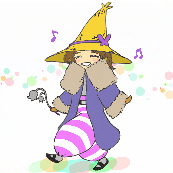 黒魔導士の服は暖かそうで冬に最適そう。帽子の網目から手編み感が伝わってくる所もほっこりさせられて好きです。