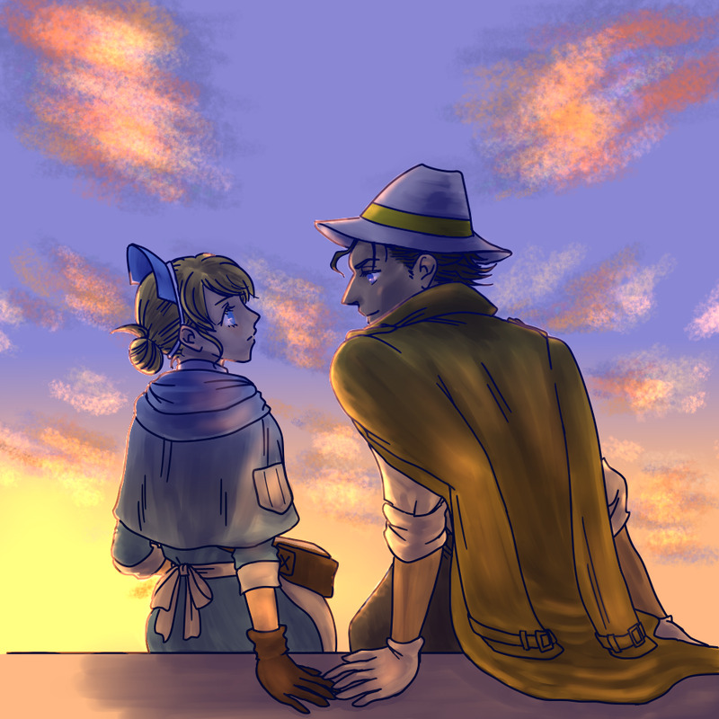 意識してないただの仲間だったらしっかり手を握ってそうだと思うんですけど、指先でそっと触れるだけのほうがパル→キャスのカプ妄想が伝わるかなぁ、など企みながら描いてました。