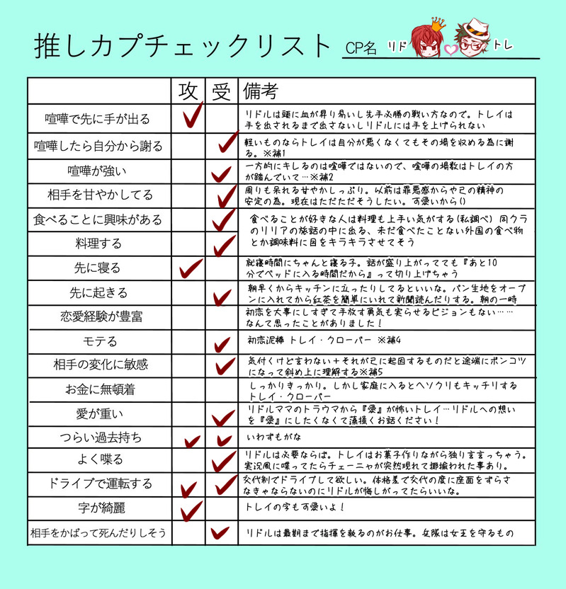 ソウ@nega_o_☆quiet followMEMOリドトレ🌹♣推しカプチェックリスト #リドトレ lidotrache show all(+1 images) Tap to full screen (size:1170x1218).Repost is prohibited Let's send reactions! freqpopularsnackothersPayment processing Replies from the creator Follow creator you care about!☆quiet follow ソウ@nega_o_DONE1枚目は前フリ。2枚目が本番な安飛。降風ではなく独立個体。azsとamrで喫茶店のチャンネル運営してる設定。主に簡単なカフェレシピのご紹介。※2枚目、裸なのでR-18とさせて頂きます🗿1枚目のamrの言い回しを気にして読んでいただけたら幸いです 3 ソウ@nega_o_DONE降風。練習※R-18※3枚目にカクカクなGIF追加しました!INしてなくても事後だしチソ出てるのでR18とさせてください 3 ソウ@nega_o_DONE #攻めのつもりが受け降風素敵なタグ、企画に遅ればせながら…期間は過ぎてしまいましたが素敵な企画をありがとうございました! 3 ソウ@nega_o_DONE降風。致したり裸だったりではないけど、ネタが少し大人向けなのでポイピクに 2 ソウ@nega_o_DONE恥ずかしくなったので🗝コナ🧩ハロウィン🎃降風でアホな四コマ全くえちくはないが未成年にはよろしくないものではあるのでワンクッションをいれます※衣装合わせ中。amrのガワを被っておらずfryのまま会話しています。fryさんのキャラ崩壊が許せる方のみ閲覧下さい。 ソウ@nega_o_DONE降風少々シモなのでポイに 3 related works tstn46tTRAININGこちらは自作の文章を元にAIの○りすとで小説を作成、自身で加筆と修正を繰り返して作成したR18の小説となります。最近のテクノロジーは凄い。あと、加筆をしまくってたら結構な文字数になってしまいました。18↑?(yes/no) 8708 koubai_trkPROGRESSリドル・ローズハートの濃厚セックス講座(サブタイトル)※🌹♣️が🍎🐺にセックスを教えるお話です。※全体的に恥ずかしい※常識がズレてるNRC生※キャラ崩壊注意。※視点がバラバラ。なるべく気を付けたんですがごちゃごちゃになってるかもしれません。めっちゃ読みにくい。※♡喘ぎ、濁点喘ぎ注意。※なんかもう全部注意 11402 chocoa_241DOODLEセックスしないと出られない部屋に閉じ込められたリドトレ♣️「想像以上にリドルは雄味が強くて俺はリドルの女になった」 koubai_trkPROGRESSただただえっちなことする部分の導入の進捗。前後にも色々ありますがとりあえず自分用にえち導入の進捗を。全方位にご注意ください。読んでからの苦情等は受け付けません。 4065 ソウ@nega_o_DONE2分でわかるうち𝖢𝖯テンプレお借りしました!以下の5組ですリドトレ🌹♣マレイデ🐉💀シルセベ⚔️⚡カリジャミ🥥🐍ジェイフロ🐬🦈 5 せんぱいが悪いんだよDONEリドトレぶっかけ / リドルは見えない初恋がかなってうれしいハーツの副寮長。 素直じゃない噓つきで、リドルに「自分の寮長なら誰だったってこんなことしてあげるのか?副寮長だから?」と思わせてしまう。なんかリドルを恋するトレイの世界ではト先輩はリドルが望むならなん~でもしてあげるけどリドルに「好きだ」なんて口が裂けても言えない病気がありそうな(?) 2 くろすDONE豆イベ後のリドトレ(とモブトレ)ちょっとだけ背後注意 tstn46tTRAINING🌹♣️。寝て起きたら幼馴染みにおっぱいを吸われてて混乱しちゃう♣️と感じ始めちゃう♣️。 2 ソウ@nega_o_MEMOリドトレ🌹♣推しカプチェックリスト 2 recommended works kaka95lonDONE #腐向け 降風書き初めでした。下書きへのリアクションで🍼あったの笑いました。ありがとうございます。バブー 平和井戸MEMOお題箱ガチャで書きました。サヨナラなんて似合わないはずなのにサヨナラをする百と鳴#お題ガチャ #誰かを満たすかもしれない https://odaibako.net/gacha/929?share=tw… 247 ゆたかDONEお題ガチャより歩く時はいつも空却にスピードを合わせる獄。それを知っている空却は分かれ道が近付いてくるとゆっくり歩く。ちなみにそれは獄にバレてる。#お題ガチャ #イチャイチャしてるだけ 461 1104DOODLEお題ガチャより すずきのこMAIKINGおめがば降風くんの書きかけ~ほぼほぼ下書き 19 天かすDONEパン屋に行くとトングを持ってカチカチするカナード。トレー係の最様はそれを見守っている。#お題ガチャ #お互いが大切なふたりhttps://odaibako.net/gacha/5834?share=twから。 kia0135DOODLEべろちゅーの度に無自覚に指を突っ込む圧強めの降と普通にきすしてほしい風 ShimoTsuki_Knm2DONEお題:小さな喧嘩をして、いつのまにかイチャイチャ仲直りしてる降風 1227 pimetsuPROGRESS🐰