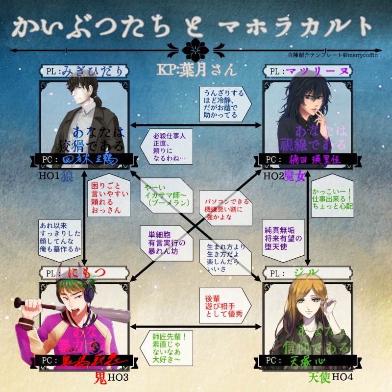 gr_trpg_gr☆quiet followSPOILERかいぶつたちとマホラカルト、思い出アルバム※ネタバレ!!!!! #ジルのTRPG jillsTrpg show all(+1 images) Tap to full screen (size:1134x1134).Repost is prohibited Let's send reactions! freqpopularsnackothersPayment processing Replies from the creator Follow creator you care about!☆quiet follow gr_trpg_grSPOILERハッピーエンドデスゲーム!DL:N-Lorさん、ありがとうございました!すご~~~~天才シナリオと天才DLでした♡みんな大好きだよ♡全員生還ルートを選んで出目もついてきてくれました♡やったーーーー!!!! 2 gr_trpg_grSPOILERトルチェ・デ・キッチュ、本日の差分!!!池の間はフリー素材さんの猫耳を乗っけてました、へへ!ファンブルで無機物になるのいいな……今後見習おう……!今回はフリー素材さんのリースにしました!2回もリースになった、へへっ!あと、これはいちじくとチーズのタルトのイメージ!https://sweets-days.com/6283/#%E6%AD%B4%E4%BB%A3%E3%81%A 2 gr_trpg_grSPOILER平行線のアポフィライト最終画像(つまりネタバレ)マッティをあんなに泣かせてしまうと思わなくて、裏で一緒に泣いていました。ひん……ひん……最良のエンドではあるんだけど、だからって心の傷がチャラになるわけじゃないんよマッティは10日間のフェティッシュ(対象:アイザック)アイザックは2か月間の偏執症バースデイで綺麗になった感情関係をまた拗らせさせてしまいましたごめんなさい 2 gr_trpg_grSPOILERインセイン「Eli,」最終マップ画像(つまりネタバレ)感情も狂気カードも凄く合ってて素敵でした!いいEli, だったな~~~~!!!!!あと悪魔RPするのめっちゃ楽しいんだな~~~~~!私の好きなRPタイプの男だよ、悪魔。後を引きながら甘く嫌らしく伸びる語尾が好き(これは性癖の話) gr_trpg_grSPOILEResの残骸、ネタバレ画像敵側にいるマッティア(偽)、地獄だけど絵面が最高にいい………狂気カードは既視感(マッティが引いた)、望郷(アイザックが引いた)、かんしゃく、闇からの祝福、の4枚でしたちょっと待ってじゃあ望郷開いてたじゃんね、ごめんなさい gr_trpg_grSPOILER「平行線のアポフィライト」出目芸人系のネタバレ 4 related works gr_trpg_grSPOILERかいぶつたちとマホラカルト、思い出アルバム※ネタバレ!!!!! 2 recommended works gr_trpg_grSPOILERかいぶつたちとマホラカルト、思い出アルバム※ネタバレ!!!!! 2 semo_pppDOODLE乱馬良牙 2 ポイピクミッシェルさんDONE月イチ企画第三弾です。「匂い」の相性ってとっても大事らしいです。そんなsgoのお話です。ちょっとえちちなので大人の方限定です。18歳以上ですか? 3600 gorillakedavraDOODLE誰ロク一日目のあのシーン。げんみ✖。マジで「え、ここで???早くない???」ってなってどうしようと内心こんなだった わんこSPOILER本編ストーリーネタバレあります。お気をつけください。 3 RANDER_gorillaDONEエピローグです絆礼装ネタがありますこれにて完結でした〜読んでくださってありがとうございました‼️ 3 tengazumi20412DOODLE「すべては『アイスルヒト』のために」 桜音みあ/Chroe*DONEオリキャラちゃんです目を先に描くアレで描いた子を元にして描いたつもりだけど肌の色とか結構大胆に変えました胸のあたりと手袋はこだわりポイントですね kokamakiDONEリザードン・ミュウツー・ピカチュウ(ポケポケ)