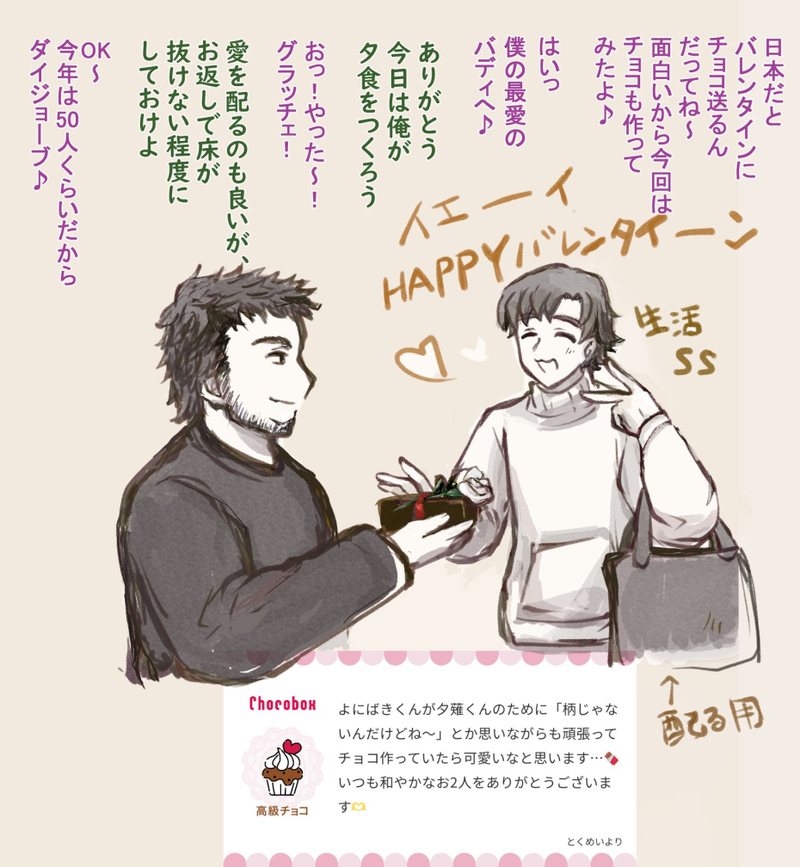 ③九龍:夕薙くんからチョコ貰った場合のトレハンの反応(2パターン)