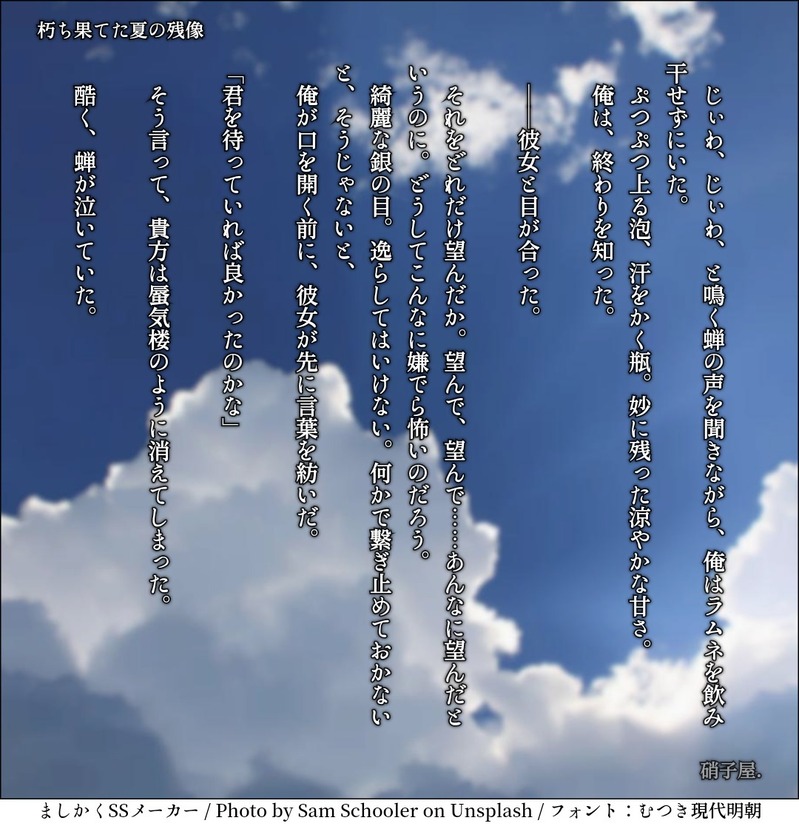 Nmkjr_B☆silencio seguirPASADO少年×幽霊の焉時。ちょっと複雑な設定があるけど活かしきれてない。タイトルは、ぽつぽつ(お題bot)様(https://twitter.com/potsuri200/status/931794778915725312?t=zVMiyq2EtbDwR2er2j1IyQ&s=19)よりお借りしました。2020.04.25作 ##焉時 Toque para pantalla completa (tamaño:1080x1120).Está prohibido volver a publicar ¡Mandemos reacciones! frecuenciapopularbocadillootrosProcesando pago Respuestas del creador ¡Sigue al creador que te importa!☆silencio seguir Nmkjr_BLUTOノートの落書き供養に。 4 Nmkjr_BGARABATEAR『青の標本』プロローグ? Nmkjr_BGARABATEAR転生パロ焉時のらくがき。 2 Nmkjr_BMEMORÁNDUM自分と自分の脳内会議を元ネタにしたトンデモなセルフ二次創作、『薄荷会議所』の設定まとめです。 11 Nmkjr_BMEMORÁNDUM※整備中 焉時とは何ぞや!? という人のための設定置き場です。 原作者は私ですが、普段の妄想メモやSSなどは二次創作という扱いです。 絵を描けないためイメージ画像はPicrewで作成させていただきました。 お世話になったメーカー一覧(敬称略、順不同) 少年少女好き?2 お隣男子メーカー Nmkjr_BLUTO※現在移植中日々ちまちま更新していた短文ともお題ともいえないポエミーな何か……?99%ネガティブ。思いついたままに記録していたはずなので、当時強く心を動かされた作品のどこか一部が紛れている可能性も高いです。閲覧される場合は「ok」とご入力ください。文字通りの最終更新:2022.04.27 1485 obras recomendadas MercuriangelGARABATEARR18 NSFW, semi-public, trans scarathanking hoyo every day of my life for akademiya!scara thank youuu COGUQIGARABATEAR Uh______hUREVELACIÓN一夜限りの相棒げんみ❌二陣三陣の曲パロとテンプレで遊んだやつ 4 しとろんGARABATEAR英桃 / 同衾普通に幸せに一緒にねんねしてる絵にすればいいのに泣かせてしまいました。 coolkabalovePROGRESOルイヴィトンの円形絨毯は、まさに洗練された上質な雰囲気を醸し出すアイテムですね。直径150cmの大きめサイズが特徴的です。広々とした空間を演出してくれるサイズ感は、リビングやベッドルームなどの主役級のインテリアアイテムとして活躍してくれそうです。https://www.coolkaba.com/product/louis-vuitton-rug-4351.html イクト🍼HECHO ichigoichinoGARABATEAR久々なので練習 TT_Rex_SoloHECHOwabさんの発言から作り出された小説 「みなさん、恒例行事です!」の黒旬ルートちょろ旬とちょいちゃらい黒須がいます苦手な方はブラウザバック黒須に関してはキャラがイマイチ掴めてないので助けて欲しいけど納得してくれると嬉しいな。18歳以上ですか?[yes/no] 6790 麗㒯(Ulua)HECHOにょたふみちゃん愛されSS③いおふみ⚠受けのみ女体化⚠解釈ガバガバ 1480