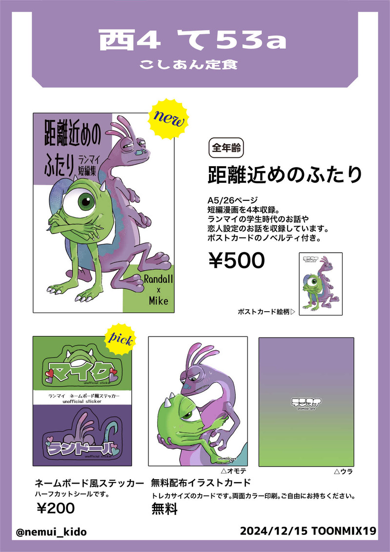 nemui_kido☆quiet followMENU12/15(日)TOONMIX19 に参加します!!スペースは【西4ホール て53a】です!ランマイの新刊とステッカーを頒布します!トレカサイズカードの無配もあります!よろしくお願いします! Tap to full screen (size:1448x2047).Repost is prohibited Let's send reactions! freqpopularsnackothersPayment processing Replies from the creator Follow creator you care about!☆quiet follow nemui_kidoDONE例のパーカー(ランマイ) nemui_kidoDOODLEアイビスの流行ってるペンで描きました!赤ずきんランマイ🟥🐺と単体マイク👁️ 2 nemui_kidoDOODLEチェンソーマンレゼ編を見たよ記念映画が面白かったので漫画も読んでみたいし、機会あればもう一回くらい劇場で見たい nemui_kidoDONEハートの日🫶(遅刻)テンプレお借りしました! nemui_kidoDONE暑中お見舞い申し上げます! nemui_kidoDOODLE楽器弾ける系モンスターだったらメロい実家太そうなので🎻を習っていた可能性はあるはず…という幻覚 recommended works pimetsuPROGRESS🐰 あわせDONE聖夜の駆け込みぐだ♀リン(リリィ)頭の悪いコスプレをして頭の悪いすけべをしていますこういうのだ〜〜いすき!もっとイチャコラしろ 9 ptENKeACqr57610DOODLE🔞🪐🕶️pass:18↑y/n 2 2海道DOODLE別のサイトで上げていたものです。冬杏の小説としては初めて書いた物です彰人↔︎こはねの匂わせあり 6340 ケフィアDONEメリークリスマスー!!…てなワケで、クリスマスなにっぴき絵です😁一応お付き合いしてるのを前提に描いたので、多分夢はこのあと現実になる筈w ぐろいどDONE🖕⛓️🏴☠️🪲の後日談。(https://poipiku.com/10718918/11195690.html)の続き。リカルドのキャラブレがあるかも。Pass:cp4桁数字 2747 zoo3o3oozYYDOODLE #sefikura 2 あおいしょうPROGRESSトミーには雪だるまやってもらうことにした。 negimaccha_1002MENUスズゾウ展示物※最後のページは寄稿していただいたイラストです! 8