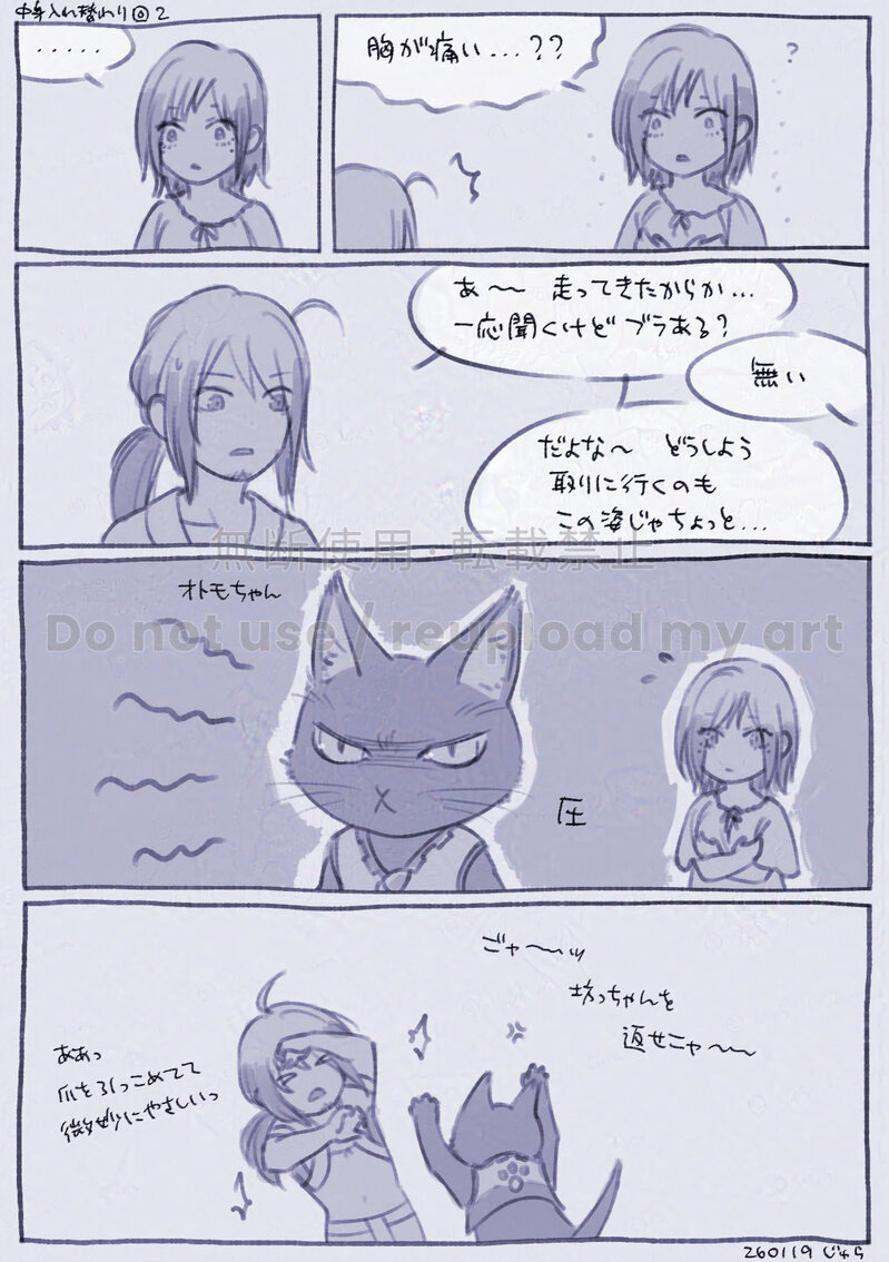 ハンターさんたちの中身がなぜか入れ替わってしまった時空の謎らくがきです。