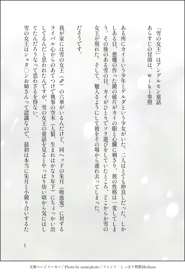 ききょお☆quiet followMEMO立華と空木と朱月の事うちの子設定なので変わるかもしれませんが show all(+1 images) Tap to full screen (size:630x928).Repost is prohibited Let's send reactions! freqpopularsnackothersPayment processing Replies from the creator Follow creator you care about!☆quiet follow ききょおSPUR ME怪異と朱月の閨の話※ぬるい性的描写あり 6 ききょおDONE謎の教授、瀧埜さんの話です。※ゼミの描写とかはあくまで雰囲気。 9 ききょおSPUR ME気持ち的には六華→空木。ぬるいですが性的な描写があります。時系列的は「執事と雪の女王の話」の方が先になります。 9 ききょおSPUR ME掌へのキスは懇願手首へのキスは欲望ですってよ。(「キスの場所で22のお題」より)直接的に性的な描写は薄いですが、事後だったりうんぬんあるのでワンクッションというかお知らせしておきます。空木→六華 9 ききょおDOODLE自分的に違和感あったところの補足設定と考察 2 ききょおDOODLE空木と朱月と六華ちゃんとときどき怪異の覚え書き 2 recommended works dondonkodogaDOODLE童しの?らくがき供養 ぱんたDONEくっつき桐真をまとめてみました!! 21 ¥つまDONEこれは朝家を出る前に殴り合いの喧嘩をする善獪善です私の性癖にしか配慮していません!! つけ麺DOODLE父水漫画二本立てです ずっと下品な下ネタです 3 LinMuAriaDOODLE拜托了BOSS 41 ドゥサDOODLE熱血1年生 カモメンマPAST2024年のクリスマスに描いたイラストですね他のネット系に投稿しましたけど同一人物なので!!!絵柄不安定は当たり前ということで(?) TT_Rex_SoloDONE2025/1/10今日は物凄く寒く、雪が降る地域が多いと聞いて書いてみました。諸旬 犬旬 黒旬 白旬 最旬 美旬腐っぽい表現もありますが多少は伏せてるので愛されな感じに見えるようにしました。(たぶん)です。良ければ栄養補給してください!!! 2815 tamagoDOODLEお付き合いを始めたばかりのクロ月です黒尾さんの言動と自分の気持ちに揺れ動いた末にとあるものに手を出す月島くんのお話。(R15)※クレバーな🌙はいません※拙作となっておりますが少しでも楽しんで頂けますように…🙏(10ページにまとめるには厳しかったーーー(心の声))パスワード制:クロ月の日の数字4桁 10