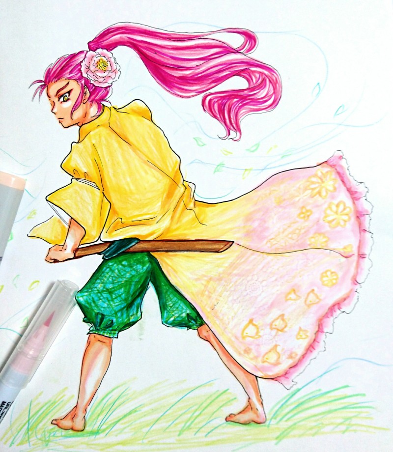和装や刀が好きで、良く描いてます。
