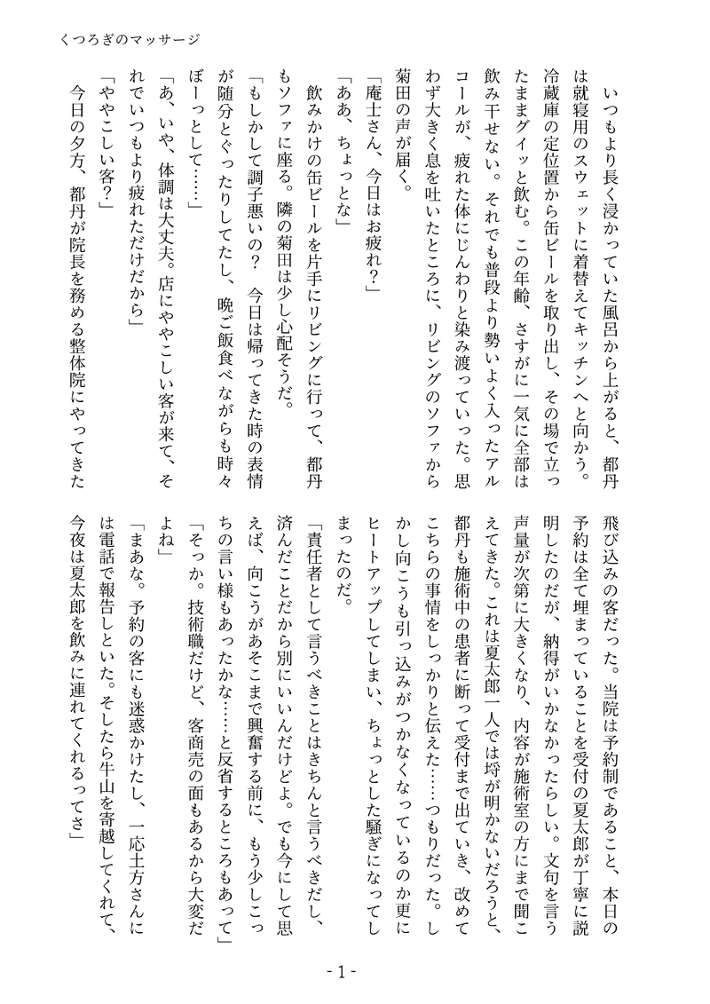 「くつろぎのマッサージ」(※現パロ菊トニSS、全年齢)