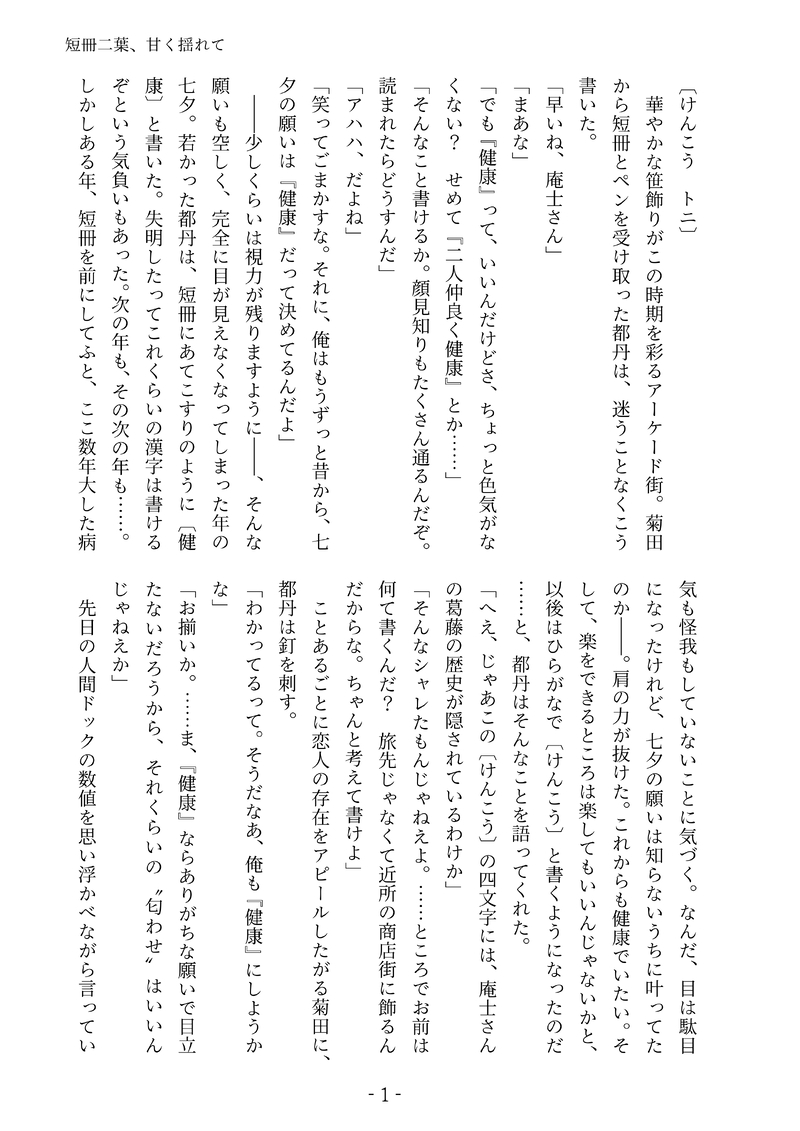 「短冊二葉、甘く揺れて」(※現パロ菊トニSS、全年齢)
