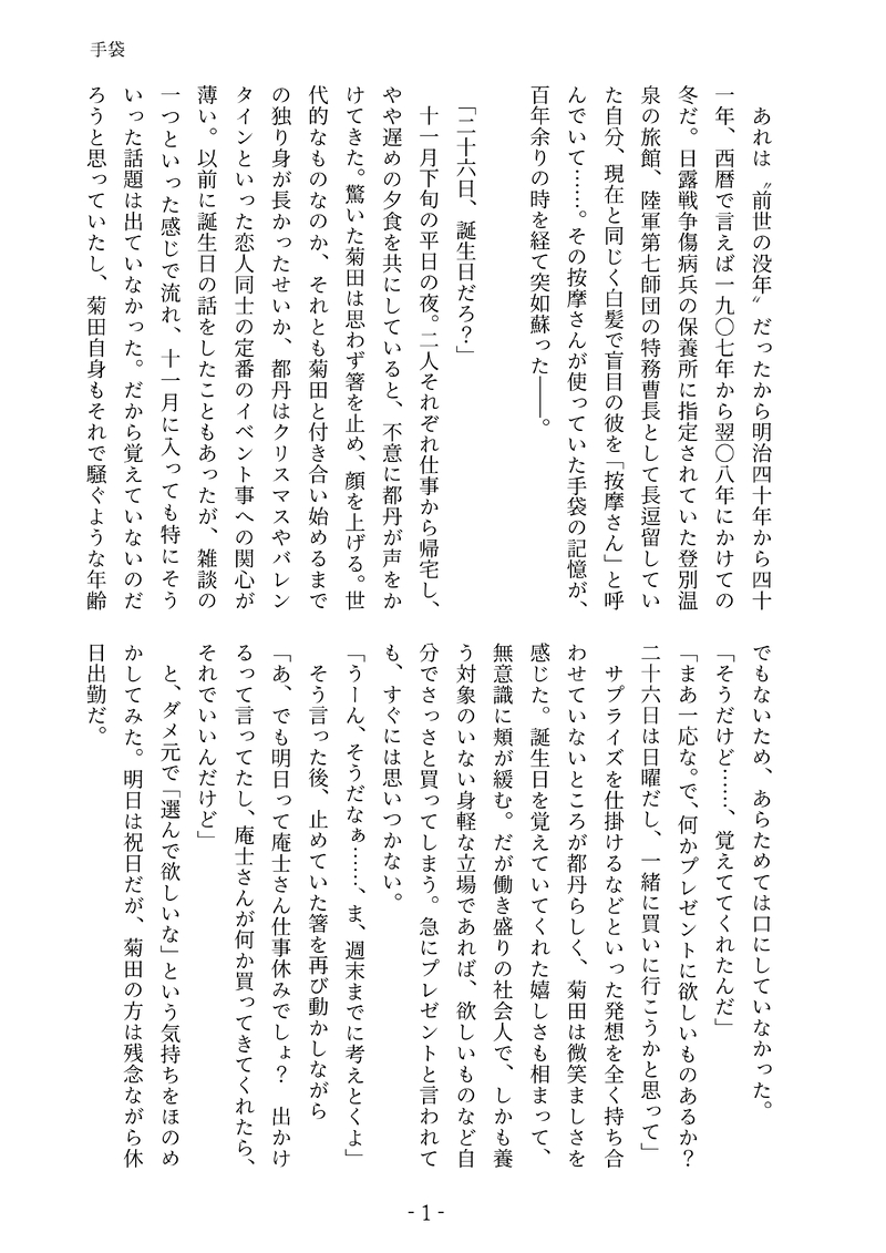 「手袋」(※菊トニ短編、前世記憶持ち現パロ、全年齢)