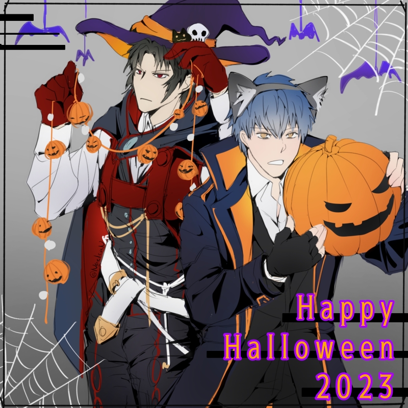 別段ハロウィンに興味無いけど、当然のように飾り付けを手伝わされる土方さんとはじめちゃん描いた!