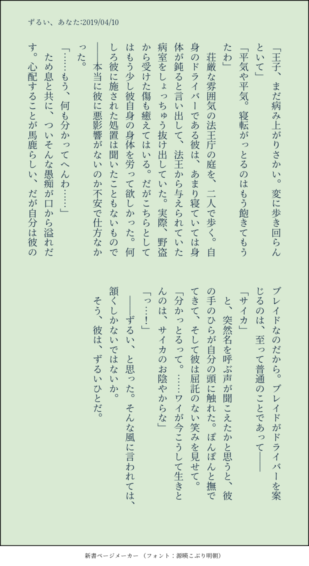 🥗/swr☆quiet followDONE4/10〜4/25に書いてたドライバー&ブレイドまとめCP色があったりなかったりサイジク→ニア&ビャッコ→ベニメツ→ラウカス→ユゴカグ→ベニミノ→ジクサイ最後のは診断メーカー等のメモ(2019/09/07) ##SS ##Xb2 ##Xenoblade show all(+8 images) Tap to full screen (size:618x1132).Repost is prohibited 🥗/swrPROGRESSSEKIRO今日の進捗昨日できなかった分今日はできるだけ進めたいな(2025/11/08) 3 🥗/swrDOODLESEKIRO漫画今日の進捗即落ち2コマ(2025/11/07) 3 🥗/swrPROGRESS今日の進捗です日付変わっちゃったけど11/5分ということで……(2025/11/06) 2 🥗/swrPROGRESSSEKIROプレイ日記の進捗②全体サムネだとあんまり進歩なさそうに見えますがご愛嬌ということで……(2025/11/04) 2 🥗/swrPROGRESSSEKIROプレイ日記漫画の進捗全ページのネームと文字入れを済ませました孤独すぎて誰かに褒めてほしいので、しばらく進捗を上げ続けます……他の書きたいものの進捗も上げるかもです(2025/11/03) 2 🥗/swrDONEぶらぼ 月狩 SS自分だけが月の魔物のそばにいたい助言者狩人の話。(2025/10/02) 2538