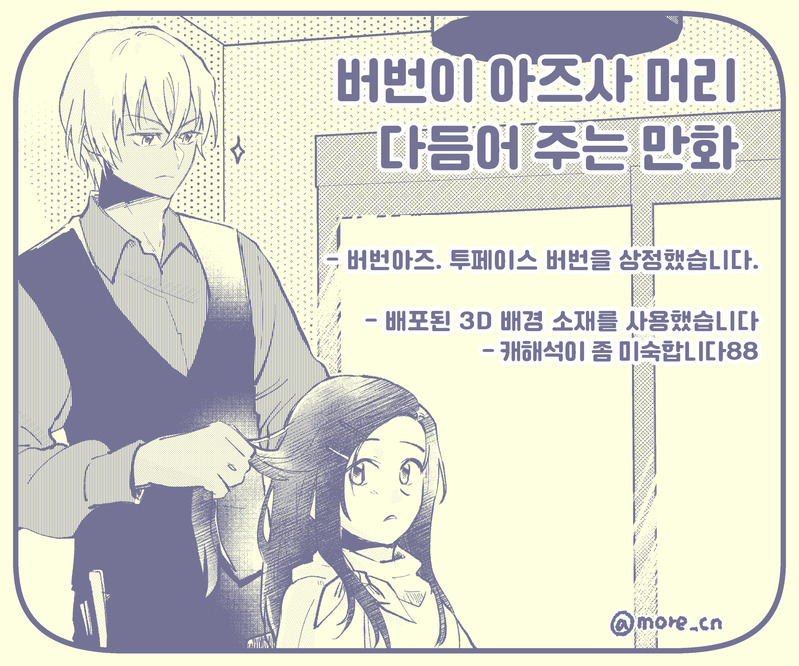 more_cn☆quiet followDOODLE버번아즈.제로티의 후루야가 자기 머리는 직접 다듬는다는 에피의 설정을 따와 그렸습니다 #bbaz show all(+4 images) Tap to full screen (size:1800x1500).Repost is prohibited Let's send reactions! freqpopularsnackothersPayment processing Replies from the creator Follow creator you care about!☆quiet follow more_cnDOODLE돌발상황 (총 4p)- 후루아즈가 사귀는 세계관(아즈사가 경찰인 걸 알고 있음)- 당시 sns에서 유명했던 '공항에서 캐리어를 검사했는데 고양이가 나왔다'<<라는 실화를 바탕으로 그렸어요 4 more_cnDONE해피 할로윈~~🎃😈🦇 more_cnDOODLE겨울에 올리지만 여름 배경입니다...😊 6 more_cnDOODLE준영연주혹시 팔로워여도 시스템문제로 볼 수 없다면 시간이 지난 후 다시 열람해주세요🥺(그래도 볼 수 없으면 마슈마로나 멘션으로... 그때 다시 방법을 생각해볼게요) 6 more_cnDOODLE버번아즈.제로티의 후루야가 자기 머리는 직접 다듬는다는 에피의 설정을 따와 그렸습니다 5 more_cnDOODLE 6 related works more_cnDOODLE버번아즈.제로티의 후루야가 자기 머리는 직접 다듬는다는 에피의 설정을 따와 그렸습니다 5
