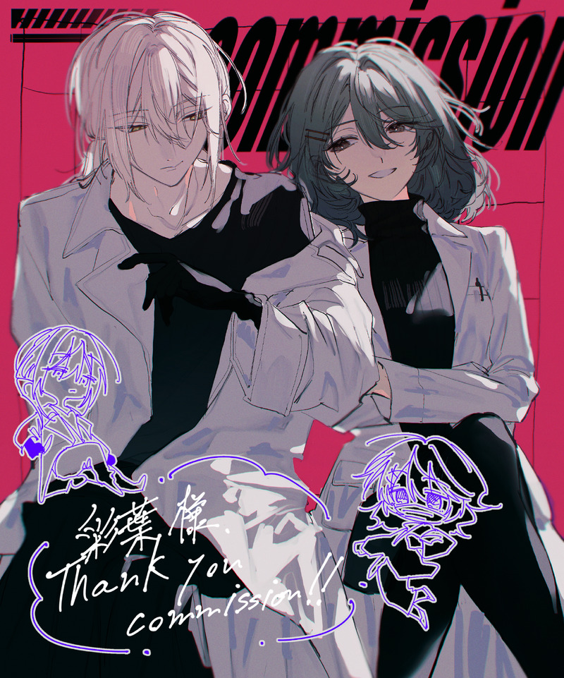 Skebにて「ステガノグラフィ」を遊んだ二人を描いていただきました!!! 最高に最高に最高だから見て~~~~!!! めちゃ美青年とめちゃ美人……やばい……!!!
