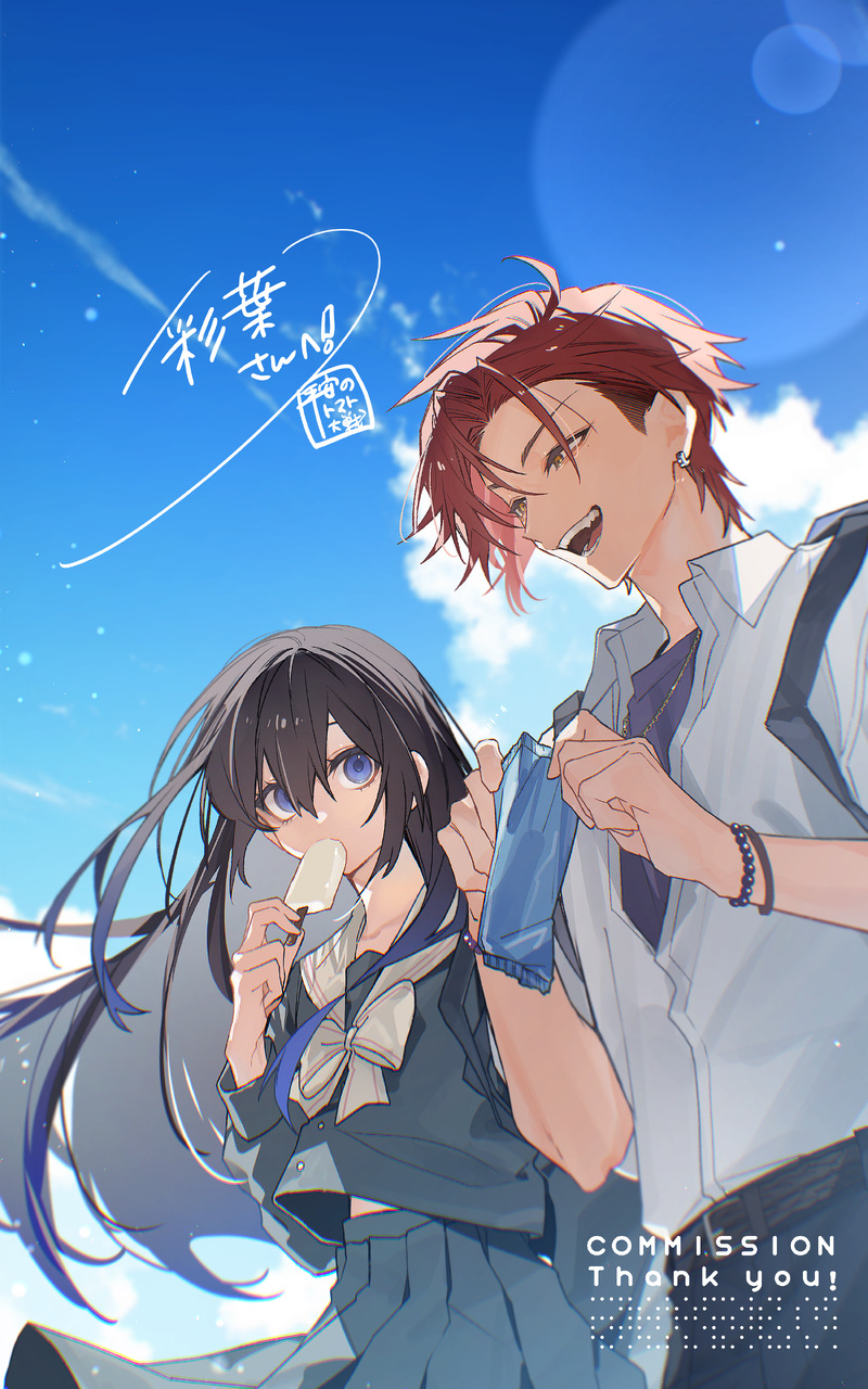 Skebにて「水天一碧を朝凪でのぞむ。」の二人を描いていただきました~~!!