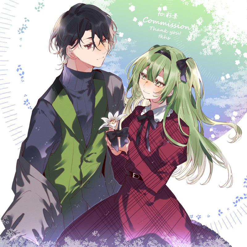 Skebにて「朽ちる果実を喰らわば」を一緒に遊んだ二人を描いていただきました~~!! 超美少女と超美青年に描いてもらって嬉しいから見て見て~~~!! 互いに優しい目で見てるの本当に好きです!!