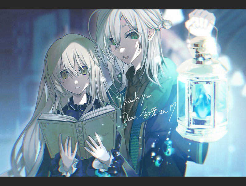 めちゃくちゃ美青年と美少女なんですが…!? 世界観にあわせてランタンや魔導書も一緒に描いて頂きました! すごく素敵なイラストで感激です…! ありがとうございました!