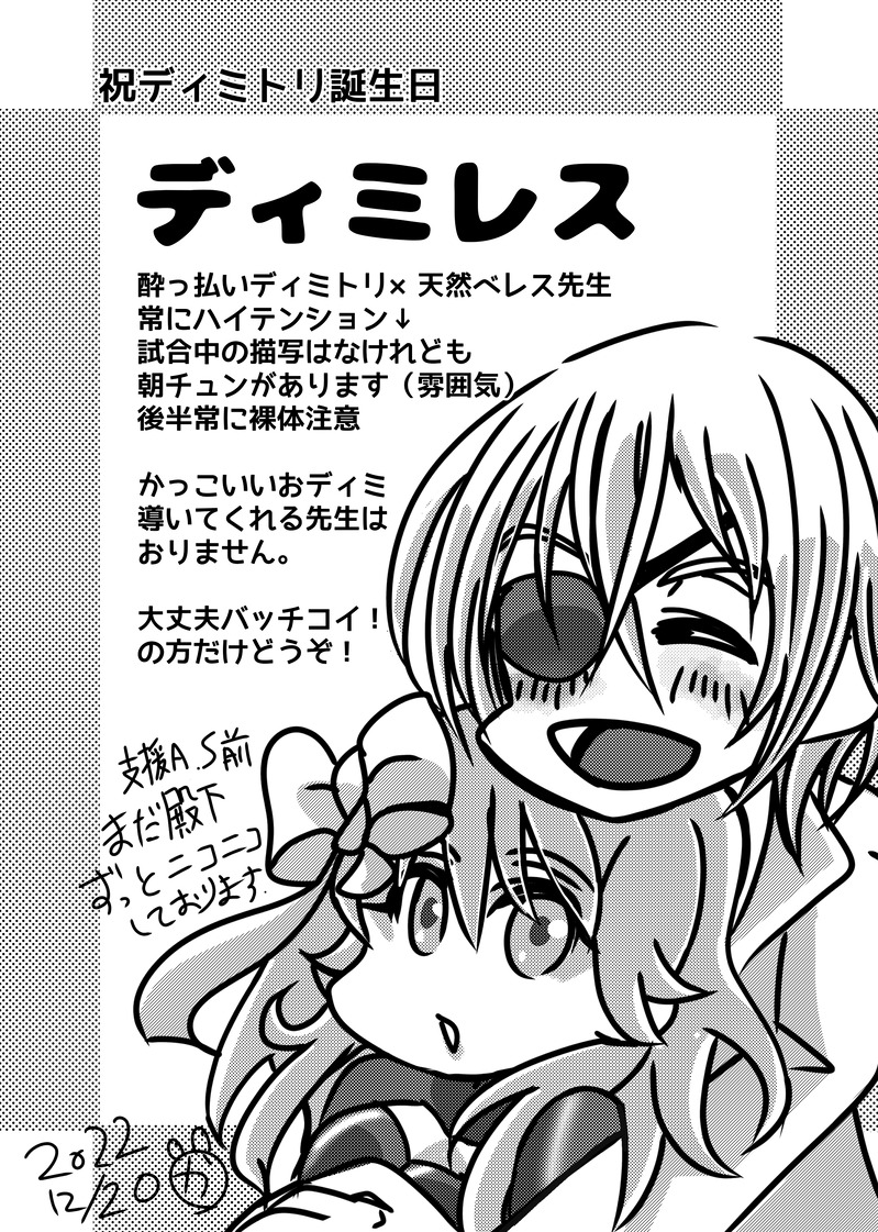 かえるさん☆quiet followDONEディミトリ誕生日朝チュンまんが素敵なタグお借りします!#ディミレス版殿下誕生祭2022 #ディミレス demesne show all(+7 images) Tap to full screen (size:2122x2976).Repost is prohibited Let's send reactions! freqpopularsnackothersPayment processing Replies from the creator Follow creator you care about!☆quiet follow かえるさんPROGRESSおねしょた!獣化パロ注意!お風呂はいってる話なんで全裸ですが、スケベはないほのぼのなはずです!!! かえるさんMOURNING気に入らなくて描き直したらすごくエ!!!な絵になっちゃったけどまーいかって言う供養 2 かえるさんREHABILIおねショタ獣化政略結婚パロ無知無知婚約時代と情緒育ちまくり結婚後時代体格差が描きたかったんんんん。 3 かえるさんPROGRESSこれ→https://poipiku.com/6432290/9145112.htmlのいちゃこら漫画を、描いている…やーん かえるさんMOURNINGぜんぜん間に合わなかったハロウィンのおねショタ かえるさんDOODLEかわいいレス先生の練習ほぼおっぺえ。むそと夫婦ディミレスが少し related works asmDONE「獅子は狼に先制する」すけべなディミレスSS。ディミトリがユーリスに嫉妬する話。煤闇ではなく青獅子本編なので、大きなネタバレはありませんがユーリスのプロフィールに関する記述があります。 7 つく(@29zzz_)DONEディミレス / 欲情スイッチ※R-15ディミトリ外伝あたりで先生がフェルディアの王宮にいますポロリも本番もないですがそういう雰囲気なので注意 7 かえるさんDOODLE荒れた心を自己生産で埋めるタイプのオタク先生くっつけた。 こご🔞TRAININGディミレス人体練習※一応裸注意 sakigorouDOODLEディミトリ誕に上げたディミレス💕 asmMOURNING没にしたディミレスSS。お茶会 4 sakigorouDOODLE水着先生をみんなに見せたくない殿下😊✨ 江波沢DOODLEディミレスらくがき右下がお気に入り 江波沢DOODLEディミレスらくがきプンスカ先生その他٩(`^´)۶ recommended works kaori_mgtn4PASTCaligulaでダンガンロンパ3絶望編OPパロあの淡い色合いの映像と何より曲が好きだったので…配役だけはかっちり決まってるのでいつか再開できたらいいなって 5 江波沢DOODLEディミレスらくがき寒がりベレス先生 庚猫。DONE夜に駈けるパロディ ひろみつさん 須藤遥人DOODLEフッフッダーイ #うちの子 #パロディ けだまDOODLEグレムリンのようになった🌸※グレムリンパロ 4 ィリュシアの骨DOODLE永遠にゲームで対戦したいアレのパロ……ネタっぽいようでメロディはカッコいいし歌詞も楽しくて好きな曲です もず🔞DONEお風呂 Pessy_LujiDONE類寧々 | 神のまにまに(随神之侧)*中国語ご注意いただきます自分の妄想パロ、神明 x 際品ワンダショの神のまにまにマジ尊いで思ったから書きました。 5920 隅幸(すみゆき)DOODLE最近1周目(青獅子)をクリア。べレス先生はディミトリと結婚しました。先生の手はディミトリにとっての救いだよ…っていう落書き。