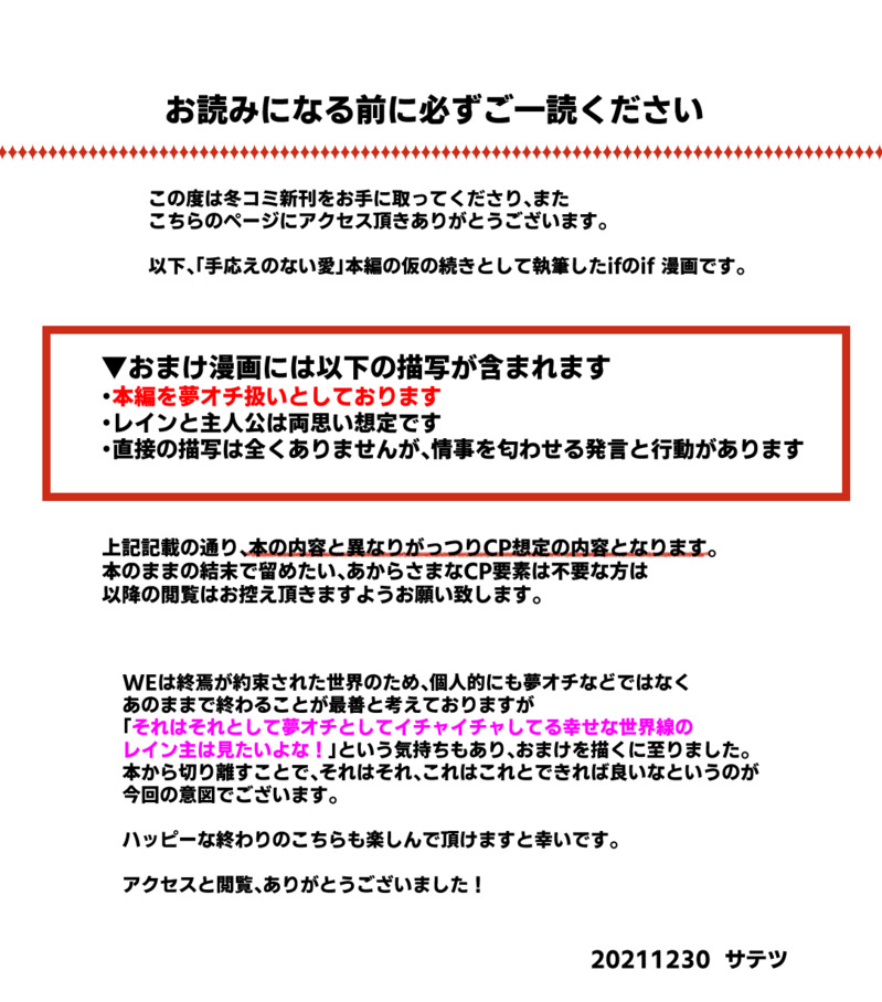 冬コミレイン主新刊お手に取って頂きありがとうございました!