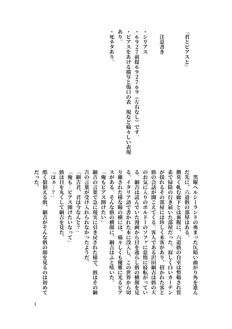 Rolls_rollos☆quiet followMOURNING6927『君とピアスと』2人がピアスを開ける話。ちょっと暗め。 show all(+11 images) Tap to full screen (size:2664x3780).Repost is prohibited Let's send reactions! freqpopularsnackothersPayment processing Replies from the creator Follow creator you care about!☆quiet follow Rolls_rollosMOURNING先日、Boostのお礼で書かせていただいた人間道×天界道の小説です。 5 Rolls_rollosMOURNING6927『君とピアスと』2人がピアスを開ける話。ちょっと暗め。 12 recommended works yorukage0DONE 蒼月里美MOURNINGにょた骸。ただのょぅじょ。 2 助手KDOODLE骸ツナのこう言う関係性が好きです〜っていうらくがき。 monokurodaizuDONE2020/11/15六道骸(10年後)ハイライトの有無は好みだと思うけど一応差分収録 2 蒼月里美MOURNING(平身低頭謝罪姿勢)(これでもマシ) 2 蒼月里美CAN’T MAKE髪下ろした+10骸描きたかった(描けてねえ) 4 イヌッコDOODLE18色の69。 イヌッコDOODLE新しいブラシとかでらくがき。 4 イヌッコTRAINING目のメイキングしてた方のを参考にして自分なりに描いてみた。目の練習楽しい。しかし髪の毛難しい。 2
