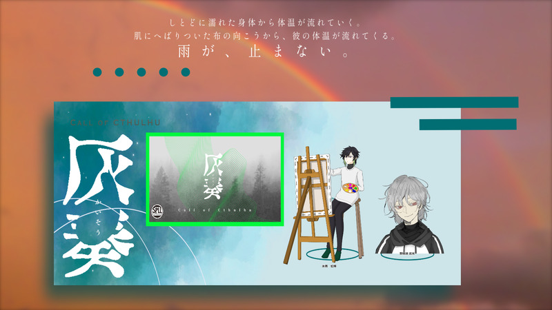tubasa_trpg☆quiet followMEMOCoC「灰奏」KP:あめじ のな (那輪波 巡光)PL:つばさ (氷雨 虹輝) Tap to full screen (size:1920x1080).Repost is prohibited Let's send reactions! freqpopularsnackothersPayment processing Replies from the creator Follow creator you care about!☆quiet follow tubasa_trpgMEMOエモクロア「超怪獣クトゥルー」DL:ゆずさん HO2芸術家:つばさ(磁場 寸愛)HO4医者:あめじのな(手代森 亜衣朱)HO5教授:きりんさん(林郷 千聡)2生還1ロスト tubasa_trpgMEMOCoC「1D10で探索者がアホになるTRPGシナリオ」KP:あるらさん(雪乃 戦稟)PL:タイムラピスさん(未畑 李心) 塩ビさん(雪村 光太郎) つばさ(虎杖 桃音 )ENDA 全生還 2 tubasa_trpgMEMOエモクロア「三殻」DL:タイムラピスさんPL:つばさ(吉備 穀美) 黒豆さん(岩黒 金美)全生還 tubasa_trpgMEMOCoC「陽炎教室」 KP・作者:タイムラピスさんPL:つばさ(秋野森 楓)END1 生還 tubasa_trpgMEMOCoC『匵紊-ドクビン-』第2話「箱庭の蜘蛛」KP・作者:黒豆さんPL:タイムラピスさん(還華 芳史) つばさ(秋野森 楓)END1 全生還 tubasa_trpgMEMOCoC「全ては眠れない夜のために」KPレスPL:つばさ(秋野森 楓)END3:全ては眠れないあなたのために recommended works GgokudaMENUhttps://twitter.com/04220714ti2022年夏発行予定の成人向け炭伊アンソロジー「炭伊事変」R18サンプル4枚※未成年の方の閲覧はご遠慮ください。 4 𓅀𓅀𓅀DOODLEpass:cn 2 lucky23_jumbleMOURNINGミッドナイトラーメンドライブ バレなしスチルレプ葬継続、ハイフェッツ継続、ドロマイ継続拡大で動くよ余談一枚一枚連番書き出しからのパソコンでAPNG編集より、クリスタから直でAPNG書き出したほうが容量食わないことを学んだ(この画質で各1.5MB程度)動くスチル、どんどん作っていきたい〜〜〜楽し〜〜〜 6 Alec_SL12INFOクトゥルフ神話TRPG「レゾンデートル」(敬称略)◆KPアルセ◆PL/PCHO1:あこ/芯地 義陽 (しんじ よしはる)HO2:亜忌/桂葉 望来(かつらば みき)エンドB1「前に進むしかねぇよ、僕たちはな」これがレゾンデートルの味ですか……最高だったよ…とてもよかったですありがとうございました;; poqcar_nDOODLE監視とヤキモチとわんにゃんビマヨダ くさったおにぎりって奴DOODLEアナログマロてゃん。 Koooten1010DOODLE一応レプ葬げんみ❌ itodoyukashiSPOILERトルチェ・デ・キッチュ! 現行未通過❌️fa💘 ラムネDOODLE 9
