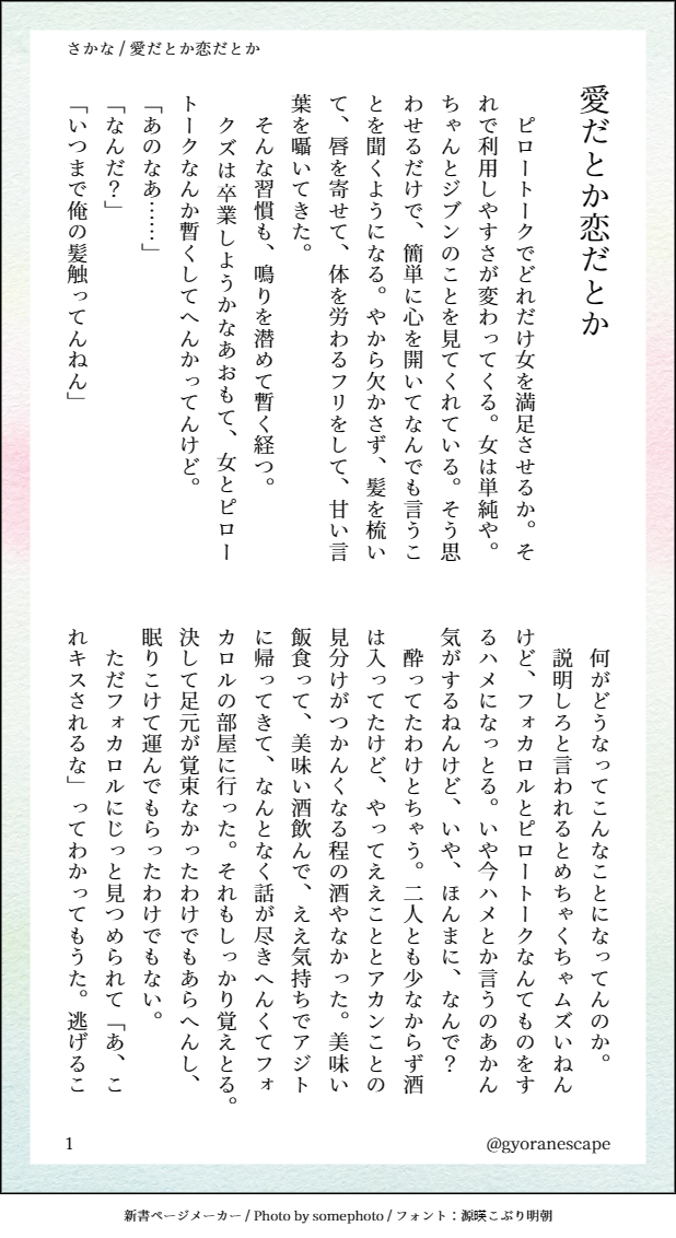 gyoranescape☆quiet followDONE【フォカスピ】愛だとか恋だとか/SS/付き合ってないけど一線超えた二人/全5ページ #フォカスピ focaspi show all(+4 images) Tap to full screen (size:618x1132).Repost is prohibited Let's send reactions! freqpopularsnackothersPayment processing Replies from the creator Follow creator you care about!☆quiet follow gyoranescapeDOODLEユキモモ/SS/雷の日に🍑を思い出す❄の話/全2ページ 2 gyoranescapeDOODLE【フォカスピ】Take care of/R18/SS/ワンライ/フォカスピのフォが自慰するのをカが見る話/リバっぽさが滲み出てるので注意/passは18歳以上ですか?? 4 gyoranescapeMOURNINGフォカスピ/原稿のボツ部分をパンの耳として楽しんで下さい 2 gyoranescapeDONE【フォカスピ】愛だとか恋だとか/SS/付き合ってないけど一線超えた二人/全5ページ 5 gyoranescapeDONE【ウァプラ+ディオ】森閑/SS/ディオの日記/ウァプラの目が見えなくなる話/全7ページ 7 gyoranescapeMOURNING【ウァプラ+ディオ】帰還/SS/ディオの日記/没供養/尻切れトンボ/全1ページボツにしたけどディオがドアを開けてくれるのをじっと待ってるウァプラは可愛い related works tsubakichanDONEフォカスピのバレンタイン(3日遅れ) tsubakichanREHABILIフォカスピ 一枚目、完全に手癖 どちらかというと教官がうるさくてうんざりするほうがピだよね……一時間前の自分と解釈違い起こすな 2 馴野ハテDONE姫始めふぉかすぴ2021年です。ぬるめですがやることやってるのでR18です。 7 文明を活用したいMAIKING描きかけの教官(とホピとピ) ホピはちゅーまで 7 みとの箱DOODLEフォカ♀スピ♀ 3 みとの箱DOODLE巨チン教官と素股するフォカスピ 2 馴野ハテTRAINING攻め喘ぎのふぉかすぴです。フォカロルさんが喘いでいますので苦手な方はご注意ください。 馴野ハテTRAINING寒波が来て毎日寒いのでフォカスピも極寒の雪見温泉に行って欲しいと思いました。 みとの箱DOODLEいちゃついてるだけ recommended works きゆDOODLE色なし落書き ##二次創作 #メギド72 2 如月葉月DOODLE まかるDOODLE yknoiaMAIKING💍⛓🐸 りか@ri08szDONEラウム君の匣が大きくなりました✨#メギド72 からすくんDOODLE三馬鹿 3 ajinooooriPASTアムちゃん まぐろのゆっけDOODLE みずきちDOODLEおじさんはねえ!君みたいな可愛いねえ、子の悶絶顔が大好きなんだよ!可愛い子には旅をさせよ的な、武闘派じゃないキャラの怪我とか本気バトル好きスコルベノトです